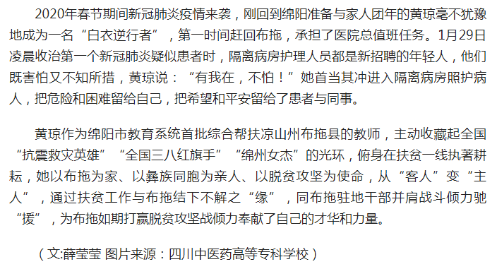 上一篇:今日头条:扶贫路上传递天使之爱—四川医专教师黄琼获四川省“最美教师”