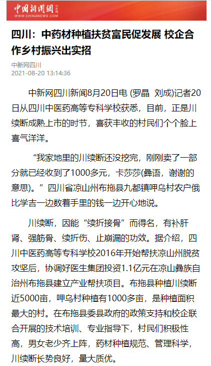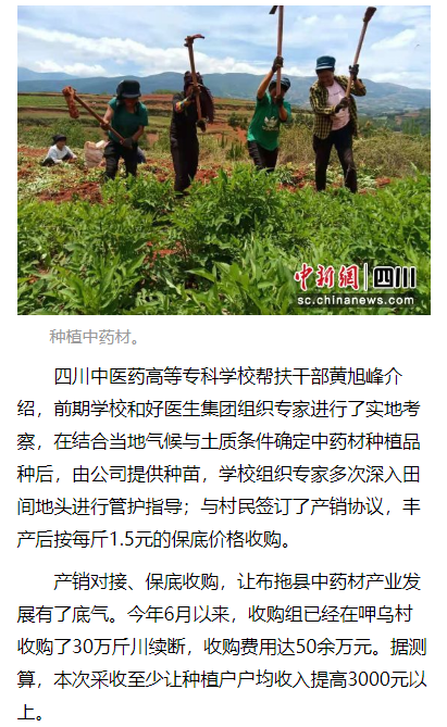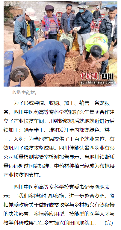 下一篇:今日头条:四川中医药高专:药材种植扶贫富民促发展 校企合作乡村振兴出实招