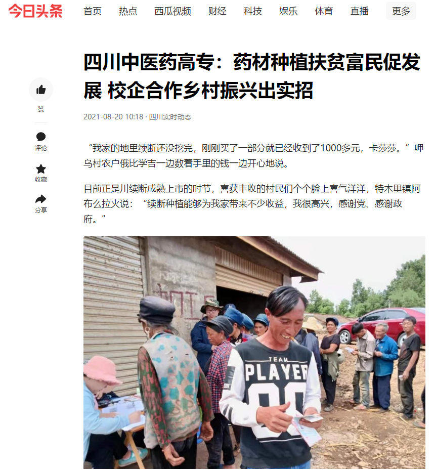上一篇:中国新闻网:四川:中药材种植扶贫富民促发展 校企合作乡村振兴出实招