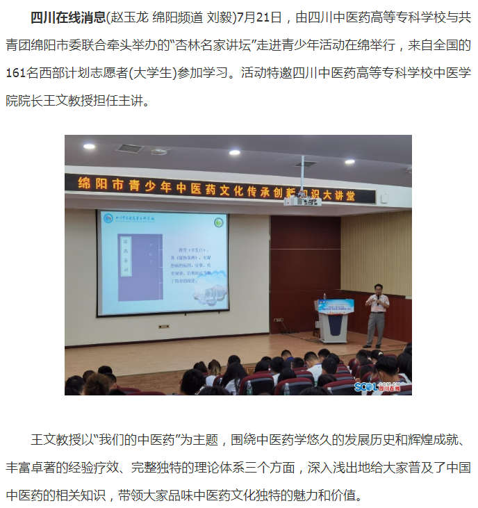 下一篇:今日头条:四川中医专“杏林名家讲坛”走进青少年活动中心