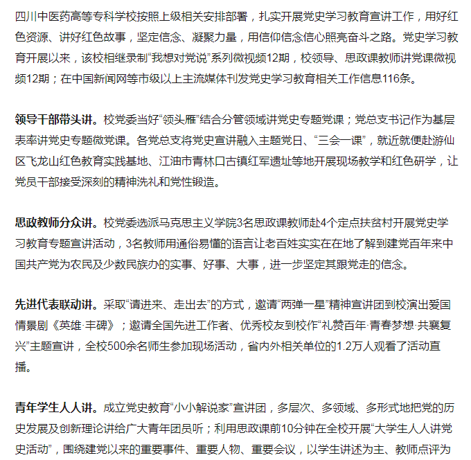 上一篇:四川党务党建网:四川中医药高专多元宣讲推进党史学习教育全覆盖