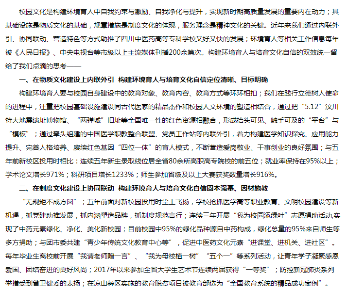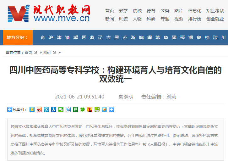 下一篇:现代职教网:四川中医药高等专科学校:构建环境育人与培育文化自信的双效统一