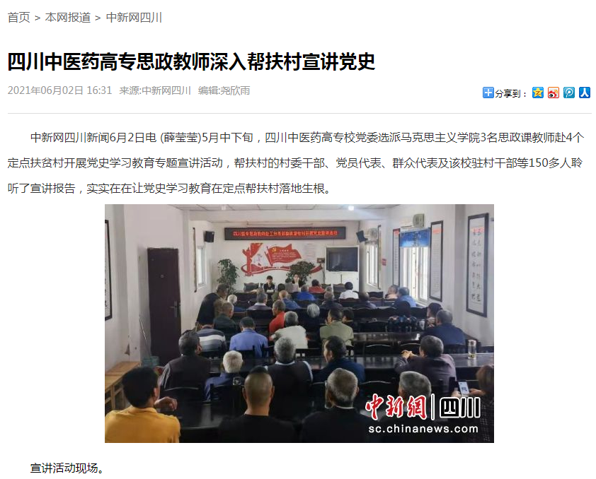 上一篇:中国新闻网:四川中医药高专思政教师深入帮扶村宣讲党史
