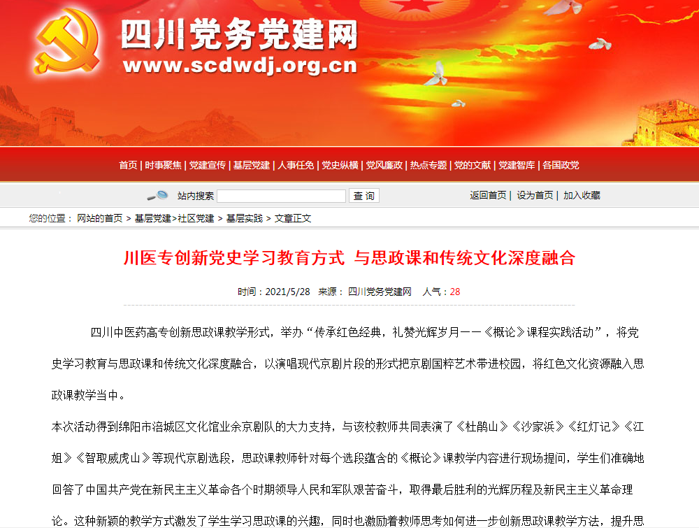 下一篇:四川党务党建网:川医专创新党史学习教育方式 与思政课和传统文化深度融合