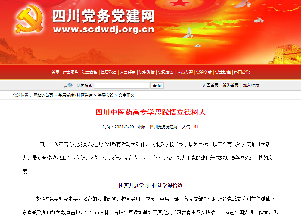 四川党务党建网:四川中医药高专学思践悟立德树人