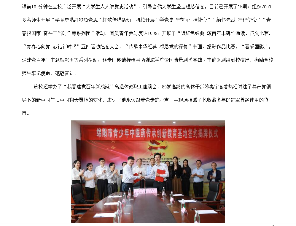 绵阳教育体育网:四川中医药高等专科学校马克思主义学院举行传承红色经典、礼赞光辉岁月实践活动