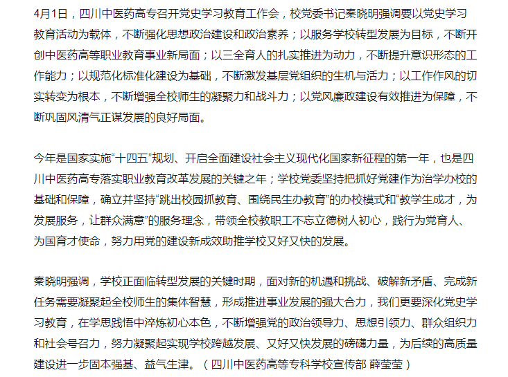 下一篇:今日头条:川医专深化党史学习教育 在学思践悟中聚合发展动力