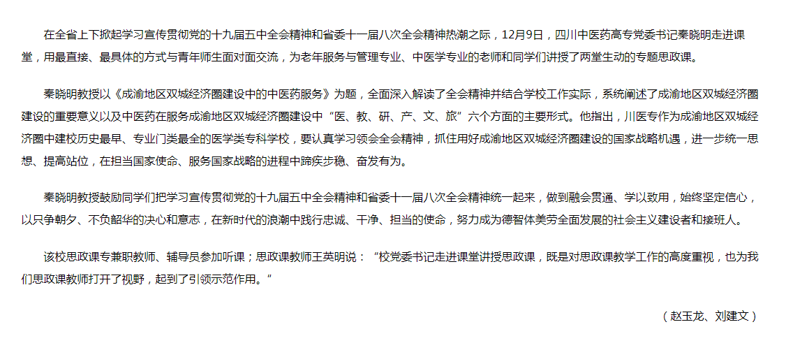 上一篇:今日头条:川医专校长走进思政课堂 让抗疫精神成为育人炼金石