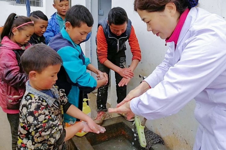 黄琼帮助孩子们树立良好的卫生习惯