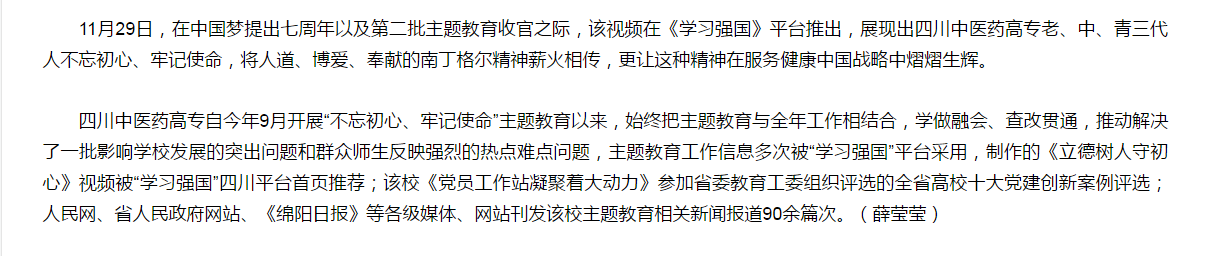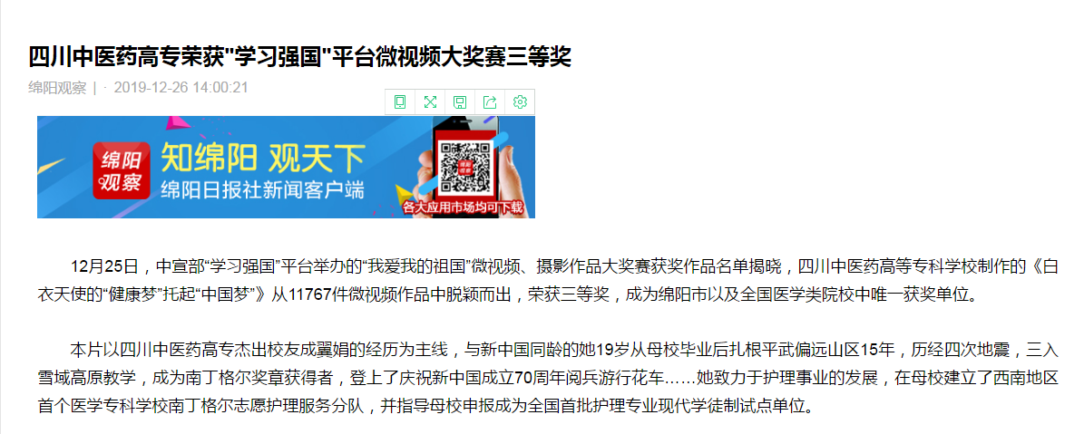 下一篇:今日头条:四川医专荣获中宣部"学习强国"平台微视频大奖赛三等奖