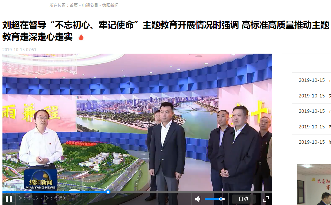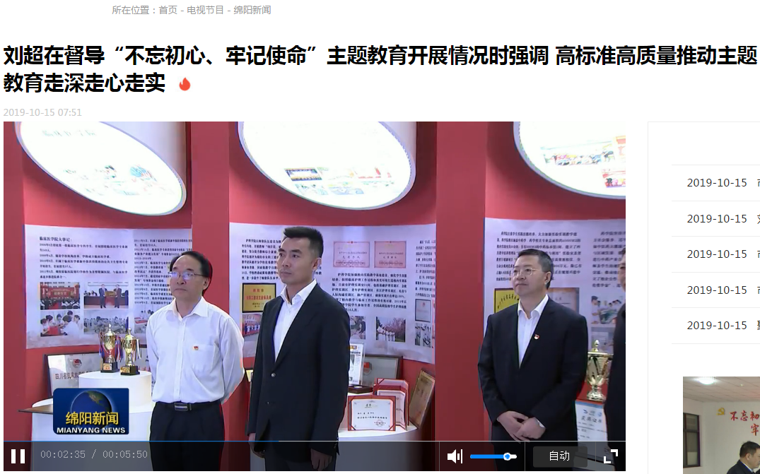 上一篇:《绵阳日报》:刘超在督导“不忘初心、牢记使命”主题教育开展情况时强调:高标准高质量推动主题教育走深走心走实 以为民谋利为民尽责的实际成效取信于民