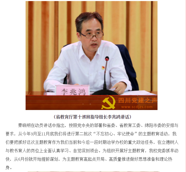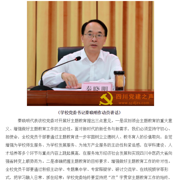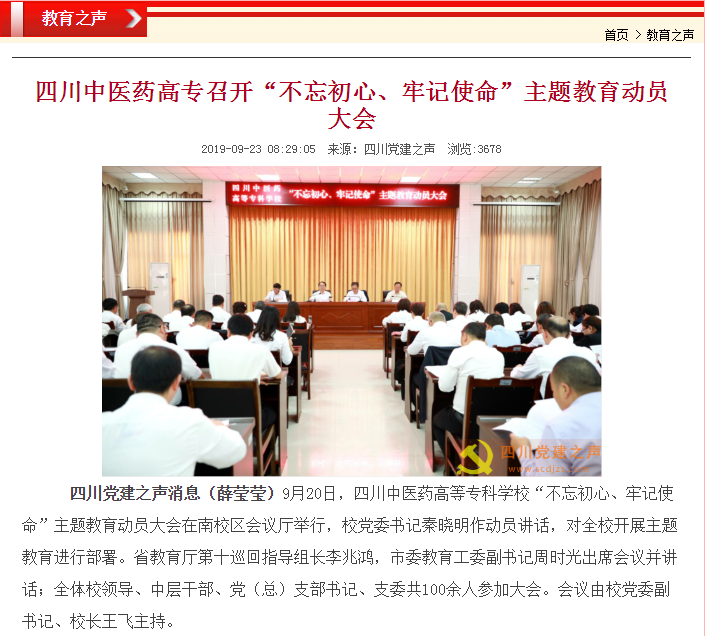 四川党建之声:四川中医药高专召开“不忘初心、牢记使命”主题教育动员大会