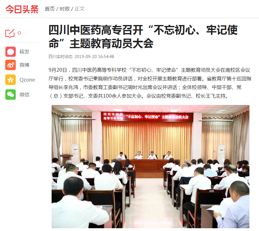 上一篇:四川教育网:四川中医药高专召开“不忘初心、牢记使命”主题教育动员大会