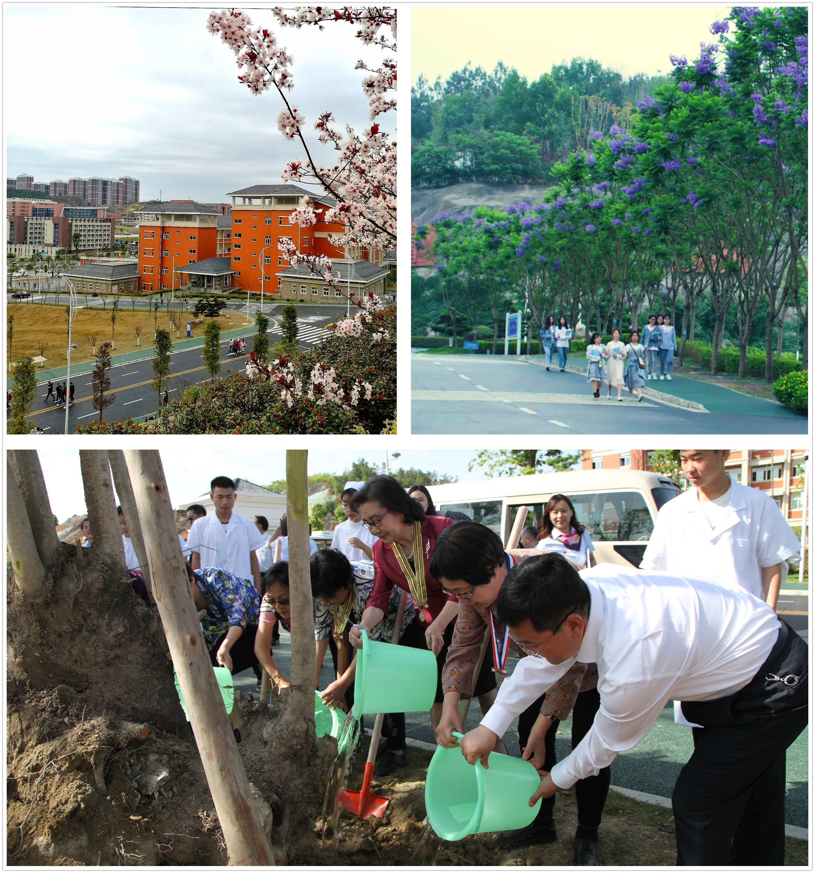 校党委确立并坚持“跳出校园抓教育、围绕民生办教育”的办校模式和“教学生成才,为发展服务,让群众满意”的服务理念。校党委向全校师生以及包括校友在内的各方力量发出了“我为校园添绿叶”的倡议,管理干部带头对树木认捐认领认养,种植了银杏、杜仲、槐树等60余种中药木本植物;开展了毕业生离校前“我请老师赠一言”“我为母校植一树”等“五个一”活动。