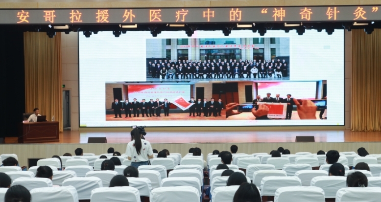 图为:邀请援非医疗队长、中医院周祖刚副主任医师讲述针灸在非洲国家获得的疗效