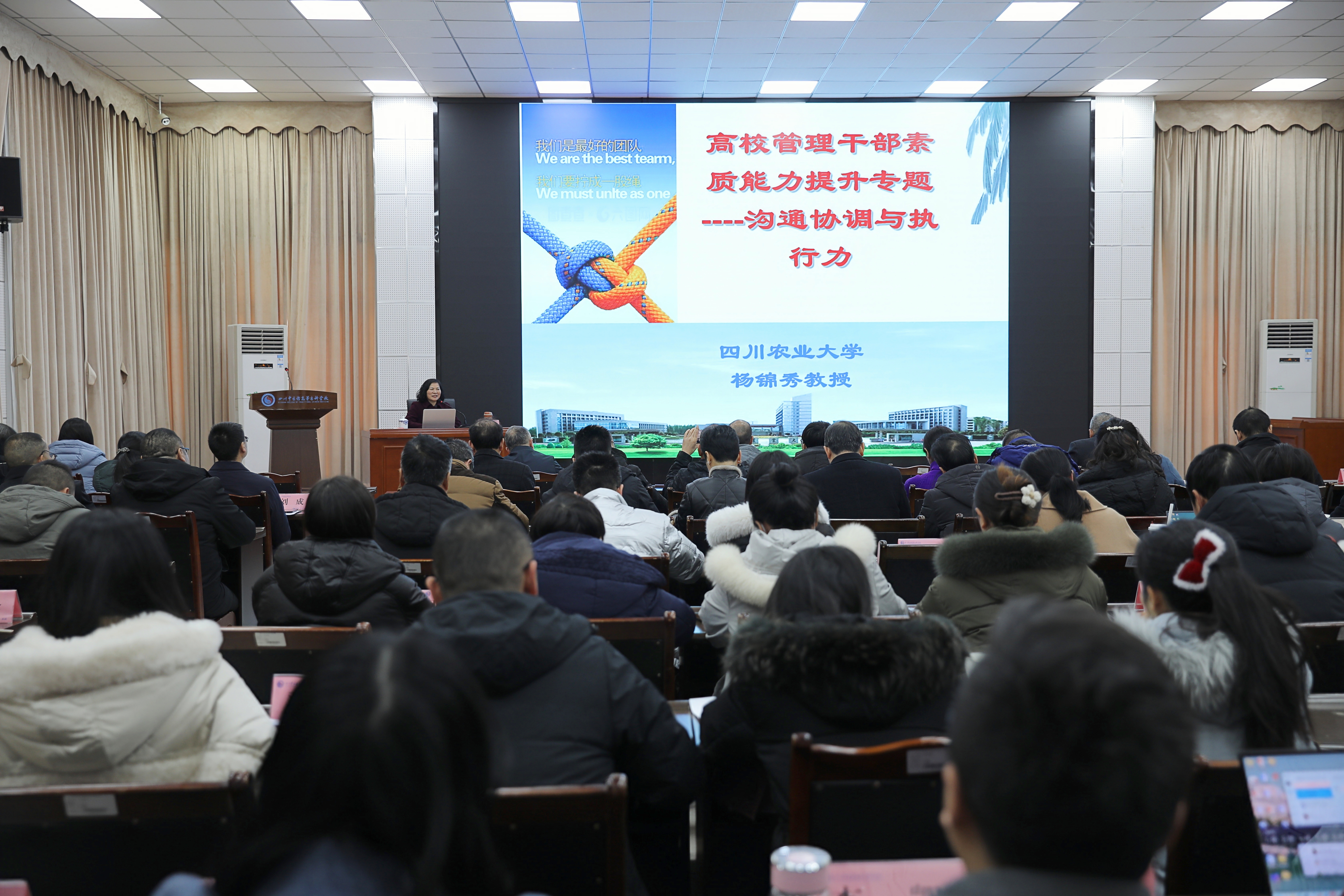 会议邀请到四川农业大学杨锦绣教授作高校管理干部素质能力提升的专题讲座,她围绕领导力、沟通能力、团队管理与建设、问题解决与创新等优秀管理干部素质能力的基本要求,深入剖析了管理概念,强调其重要性,指明目标设定、资源与绩效管理、多任务处理等管理思维能力的关键作用及相互关系,为管理干部管理能力提升提供了全面指导。