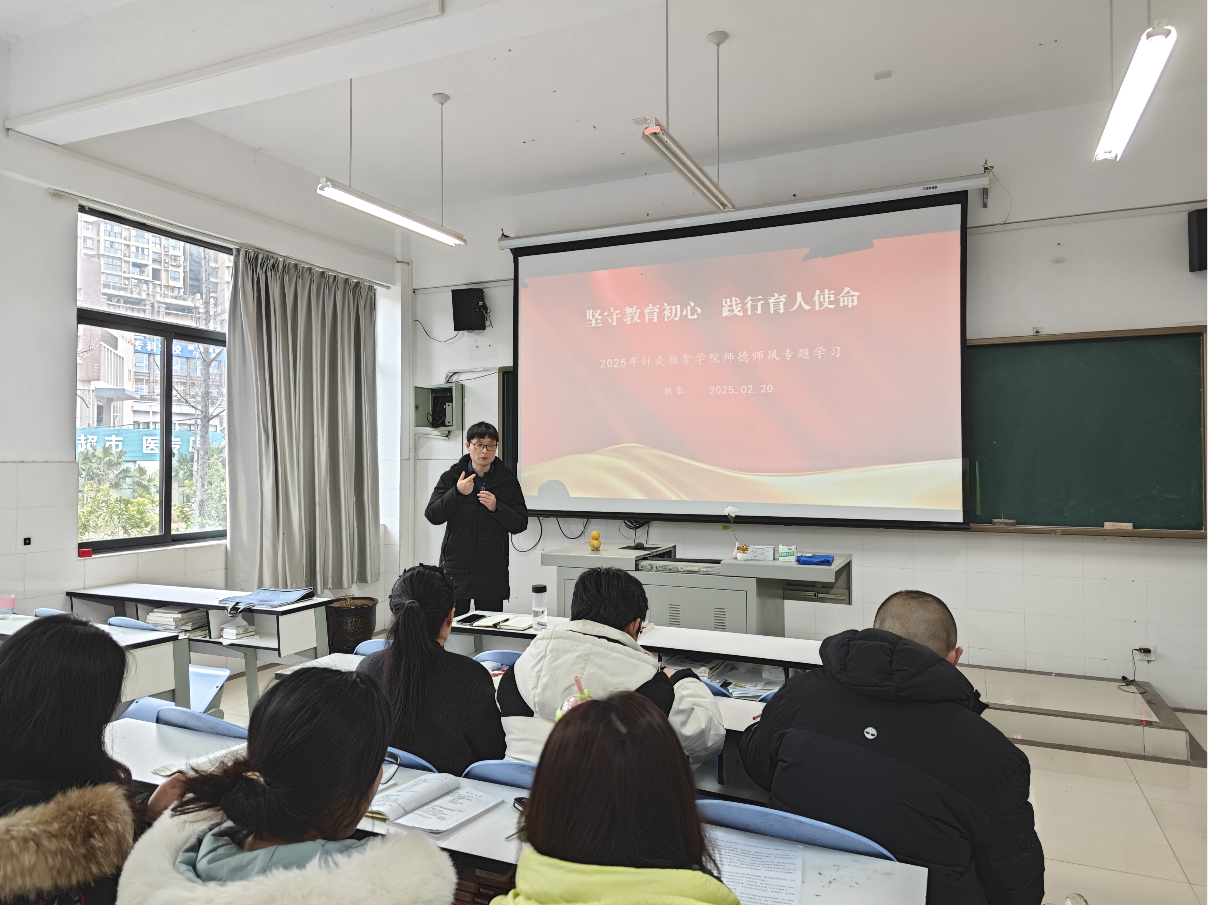 2月20日下午2点,针灸推拿学院党总支于南区教学楼6-203开展2月主题党日活动。由学院党总支书记熊华同志主持,全体党员参加。
