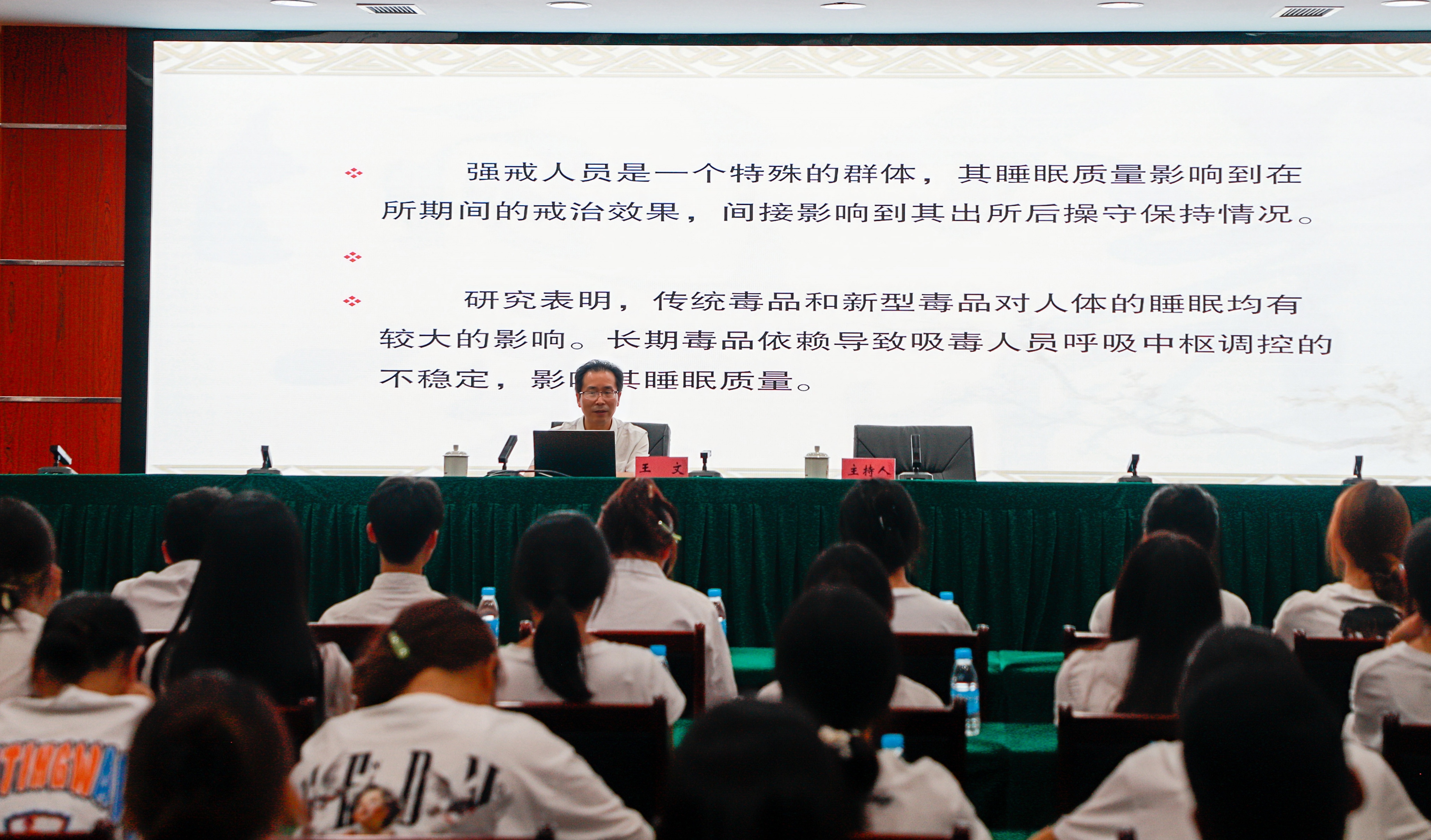 揭牌仪式后,李炜弘一行先后到全国中医药文化宣传教育基地、省新华强戒所戒毒医疗中心调研。我校中医学院院长王文应邀作《中医药调治强戒人员情志健康》主题讲座;中医学院李庆之教授现场进行义诊。