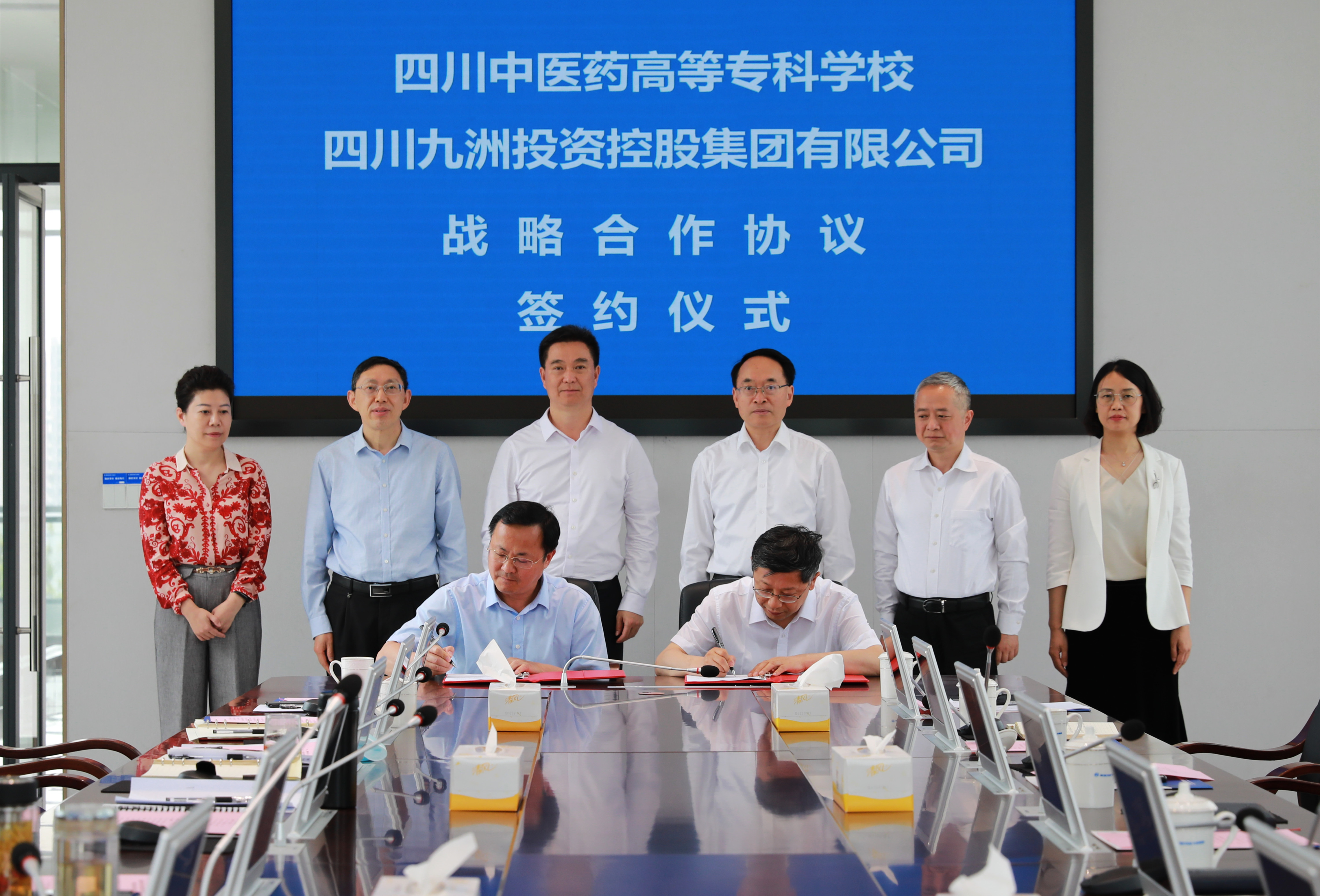 为进一步深化校企合作,5月12日,我校与四川九洲投资控股集团有限公司签订战略合作协议,九洲集团董事长夏明、副董事长王国春、副总经理袁红,我校党委书记秦晓明、纪委书记李文虎、副校长肖玲等出席签约仪式;校长王飞和九洲集团总经理孙仲代表双方签约。