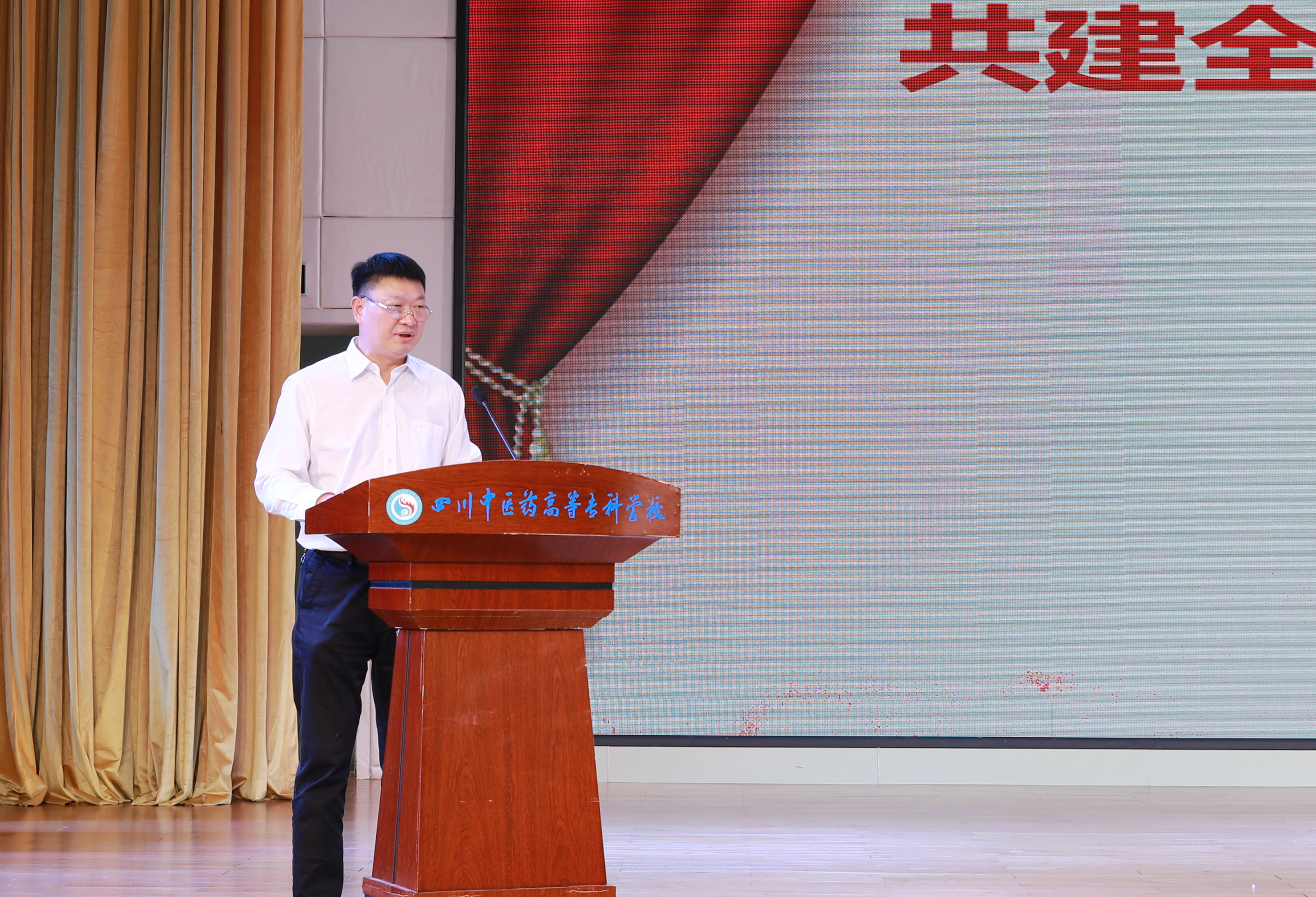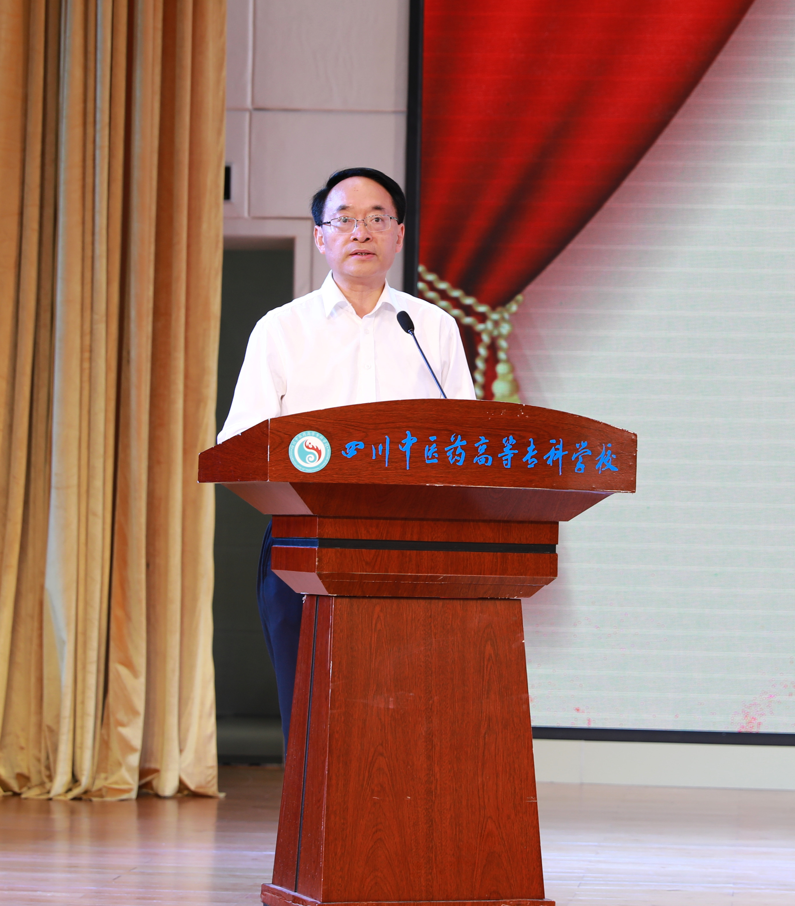 秦晓明在致辞中表示,新修订的《中华人民共和国职业教育法》自5月1日起施行刚十天,省、市红会就与我校签订共建协议,这是全省乃至全国高校中首个红会组织支持医学高等职业教育发展的新举措,我们将以此为载体和目标,抢抓医学高等职业教育发展机遇,把大德为医和“人道、博爱、奉献”的红十字精神有机融合,努力培养出更多、更好既是医疗卫生健康事业的参与者、支持者,又是红十字精神的传播者和坚守者;在践行以人民健康为中心的新发展理念中不断书写四川中医专、服务地方经济社会发展和壮大红十字事业的新贡献。