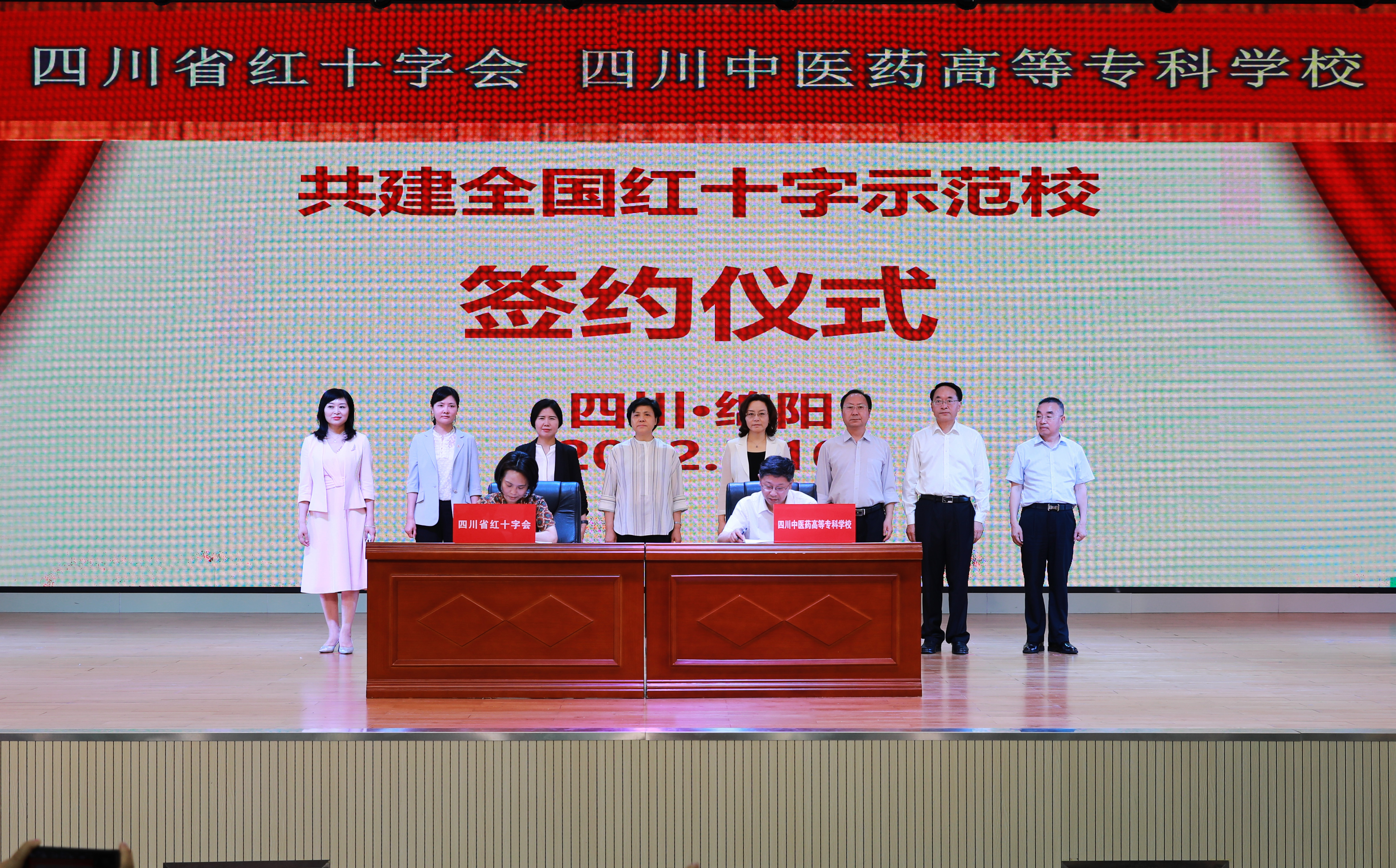 2022年5月10日,在第111个“5.12”国际护士节到来之际,四川省红十字会与我校举行了共建全国红十字示范校签约仪式。四川省红十字会党组书记、常务副会长冉茂琴,绵阳市政府副市长、市红十字会长蒋丽英,绵阳市政府副秘书长、市卫健委副主任李晓林,绵阳市委教育工委专职副书记周时光,四川中医药高专党委书记秦晓明,绵阳市红十字会常务副会长易志红,以及省、市红十字会相关部门负责人,我校领导班子成员及部分师生代表参加了签约仪式。