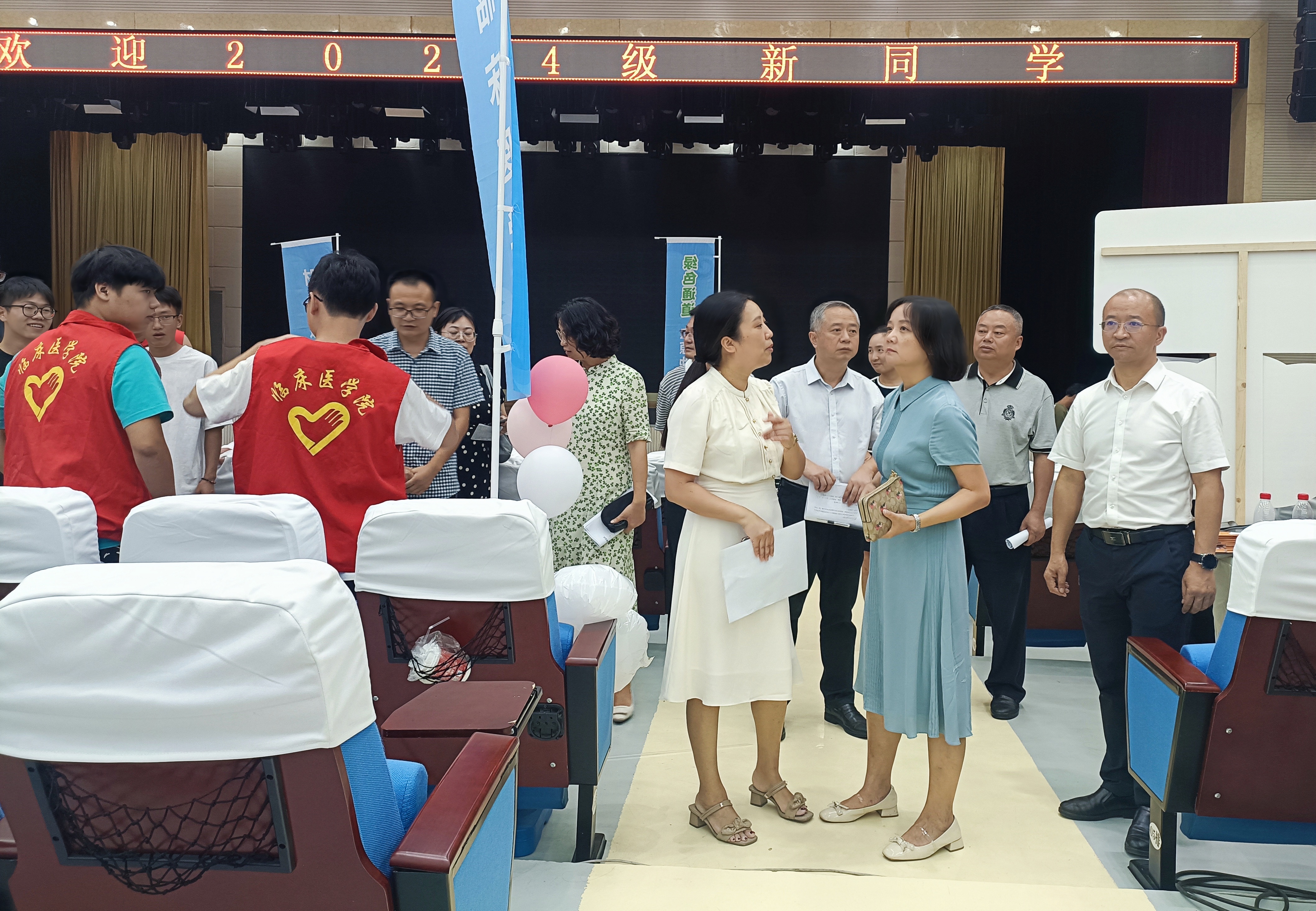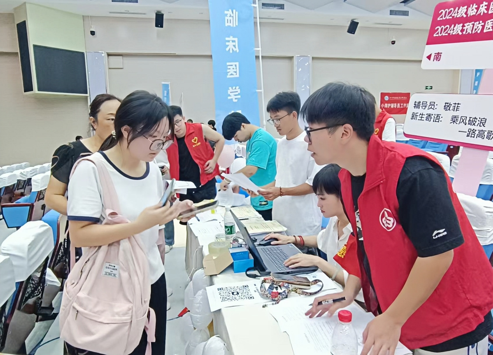校党委书记李炜弘、校长李祥率领学校领导班子深入报到现场指导迎新工作,与学生和家长亲切交谈,感谢家长们的选择与认可,鼓励新生们树立远大理想,珍惜大学时光,努力成长为服务医药卫生事业的栋梁之才。