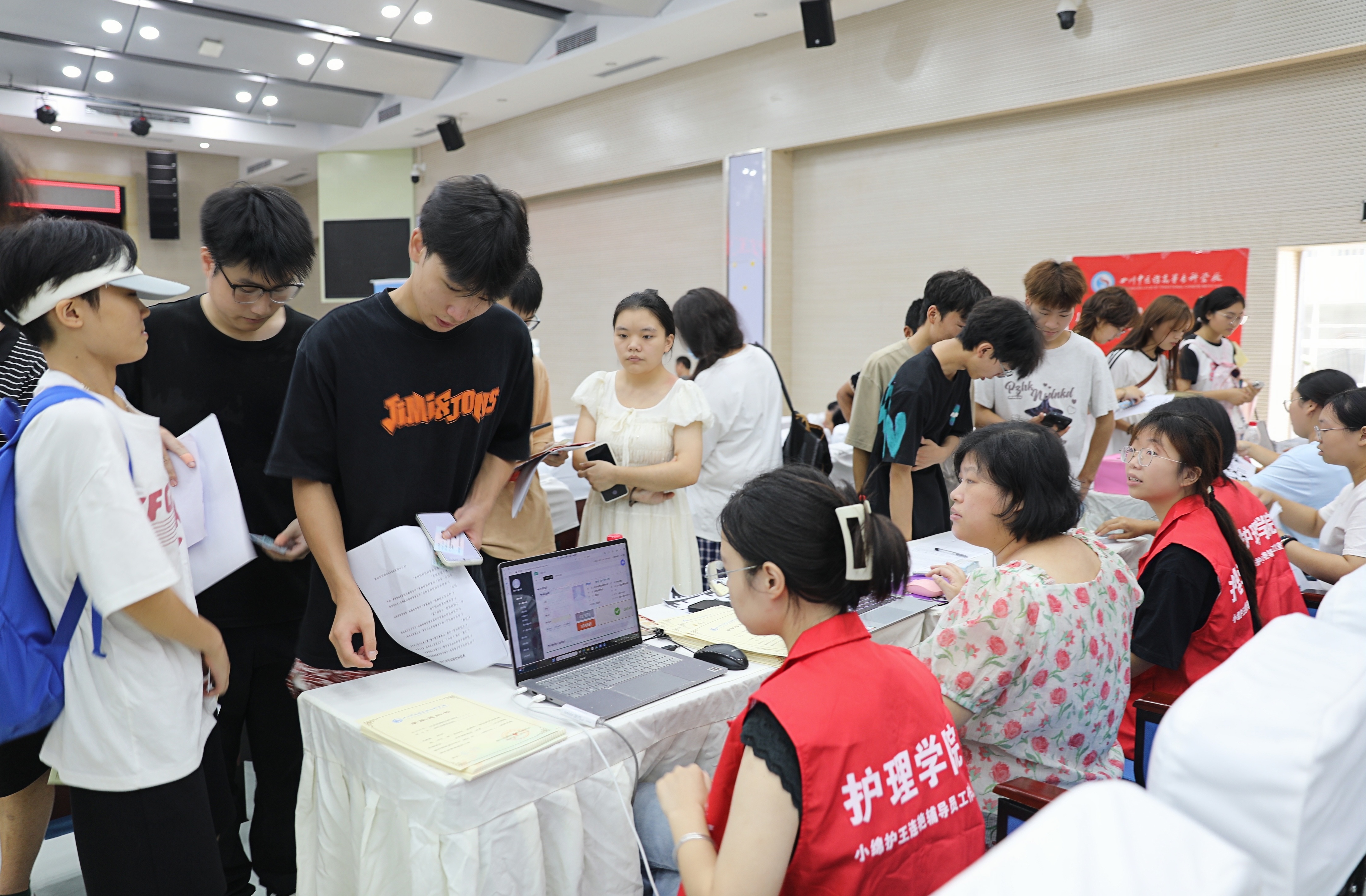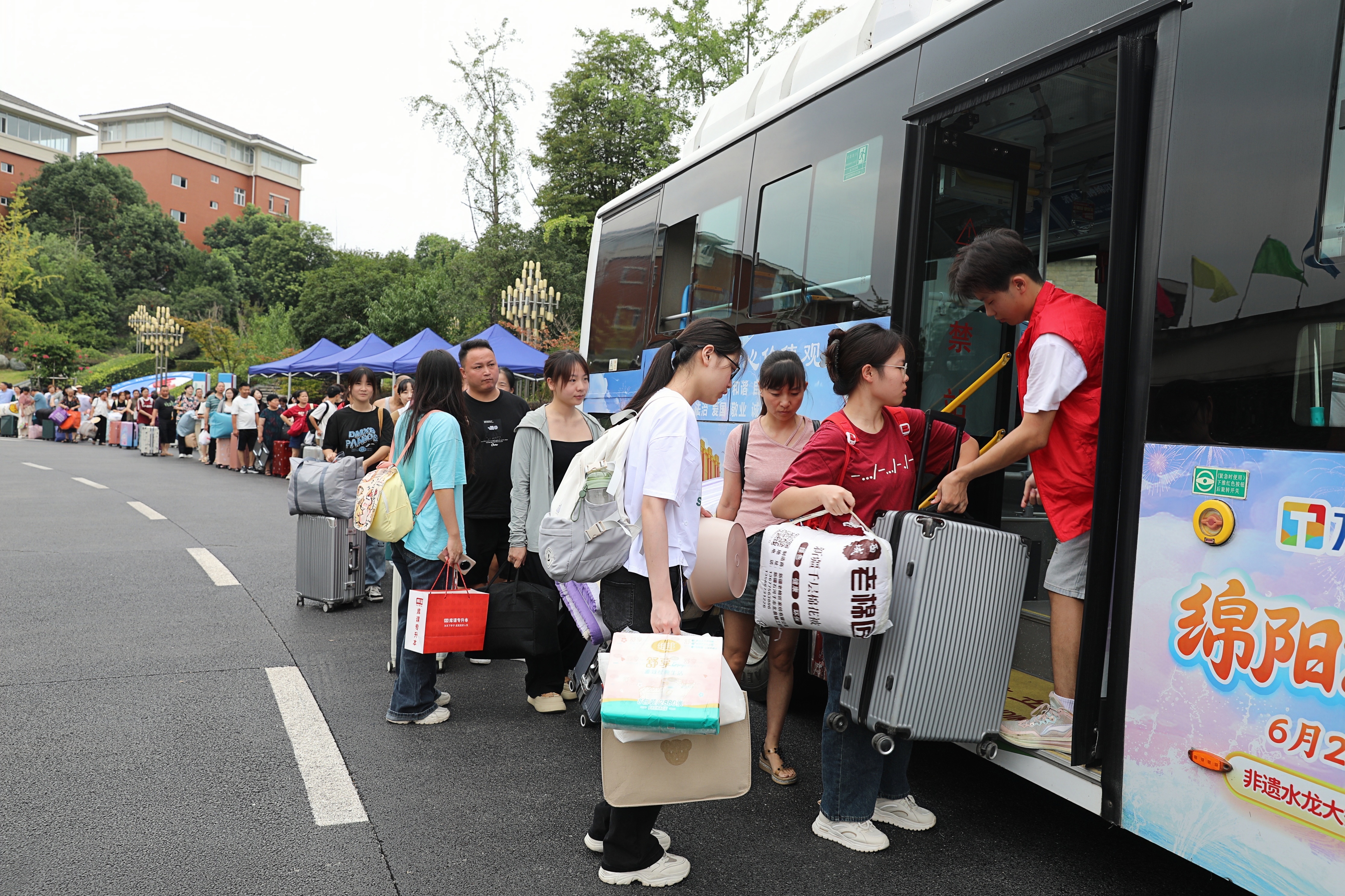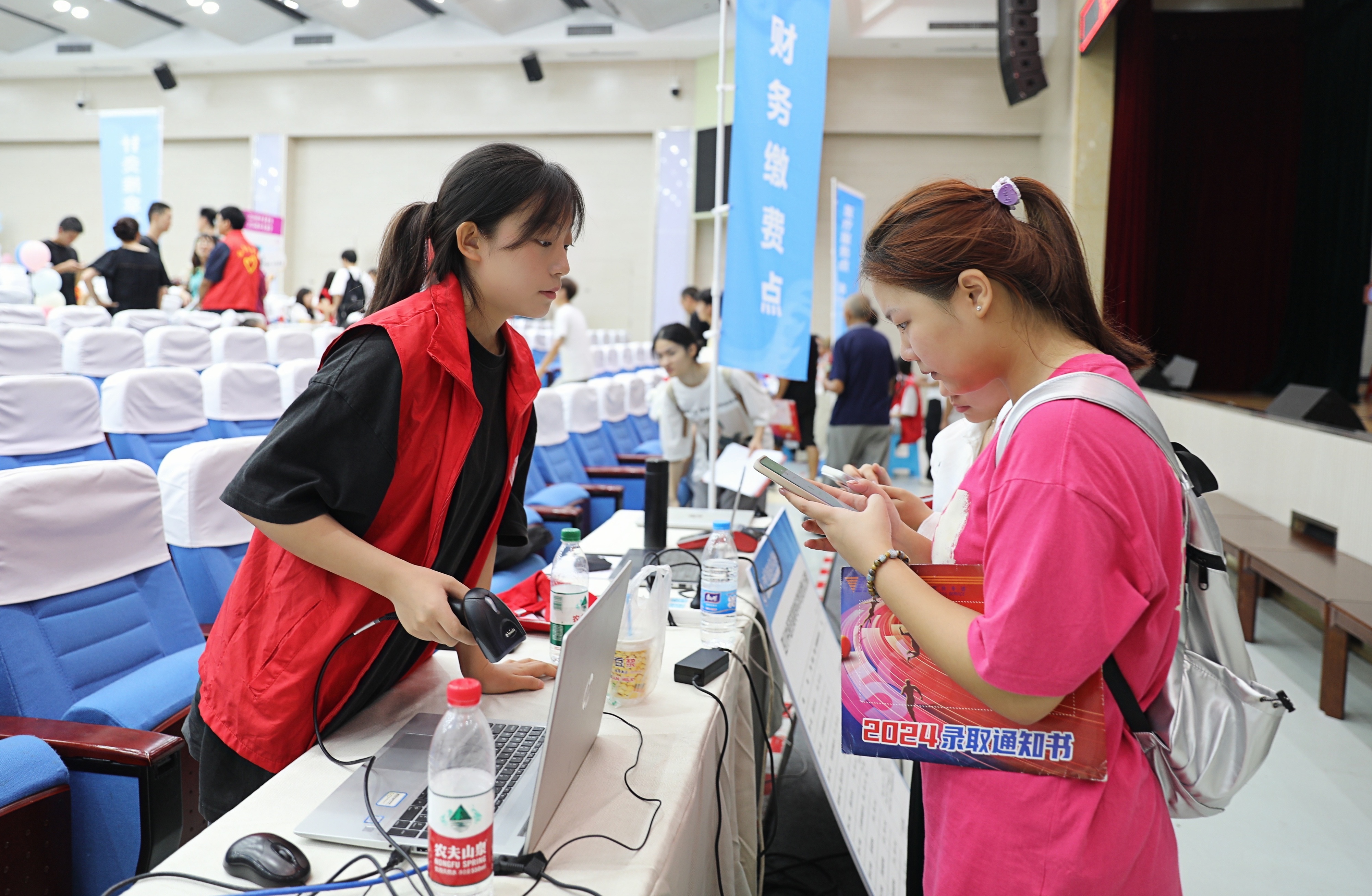 为应对高温天气的不利影响,学校优化报到流程,将报到点设置在有空调的礼堂;后勤部门还在报到现场为新生和家长免费提供绿豆汤、酸梅汤等解暑饮品;各学院为新生和家长设计了颇有仪式感的报到小环节……整个报到现场平稳有序、温馨热烈。