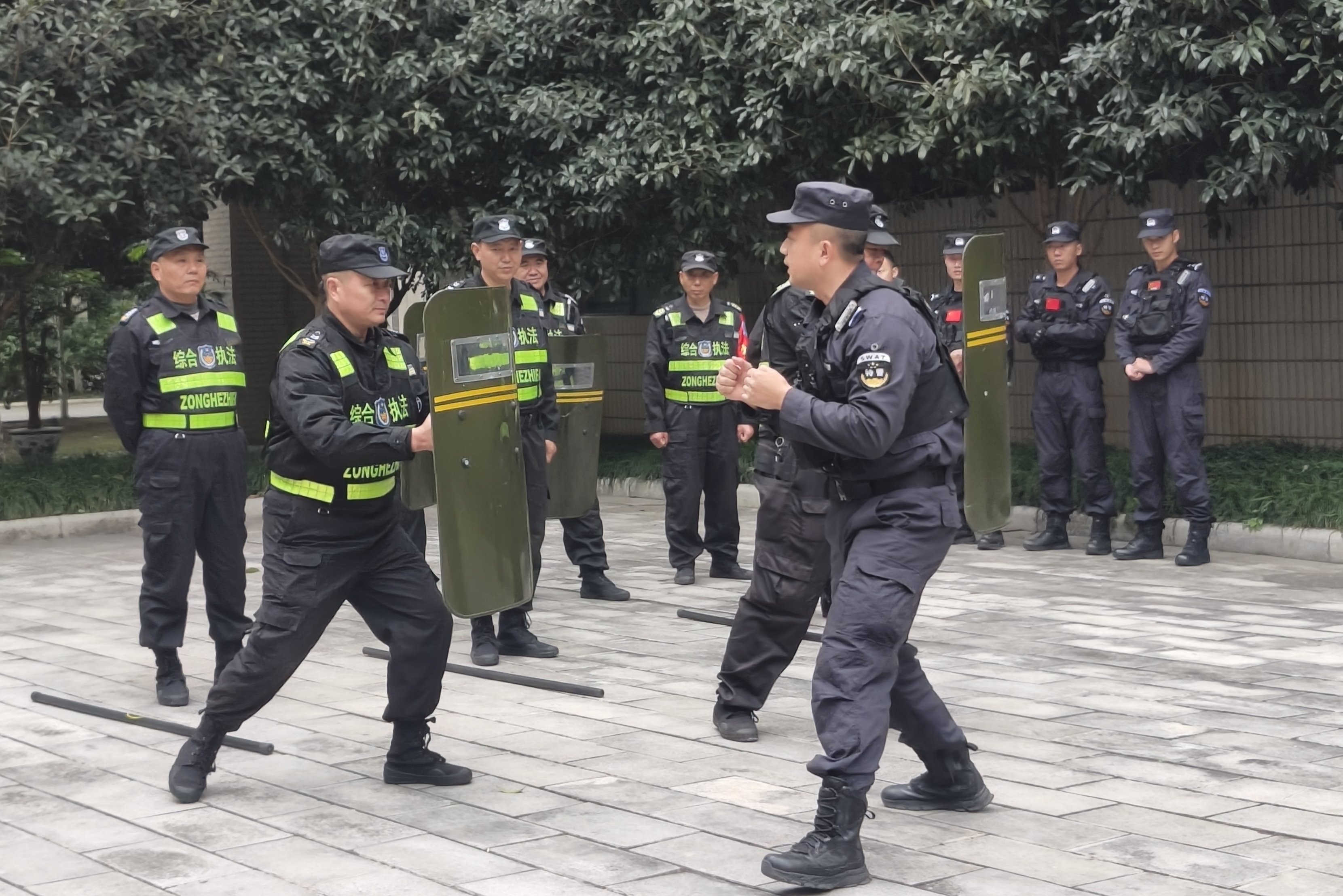 演练前,按照“安全有序,责任明确,以练促防”的工作原则,学校制定了详细的防暴处突演练方案,明确了演练内容、流程以及分工,战训大队干警提前对安保人员进行了警棍、钢叉、盾牌等防暴器械使用方法和反冲撞、防砍杀、对抗等反恐实战技能的培训,为本次演练做好充分准备。