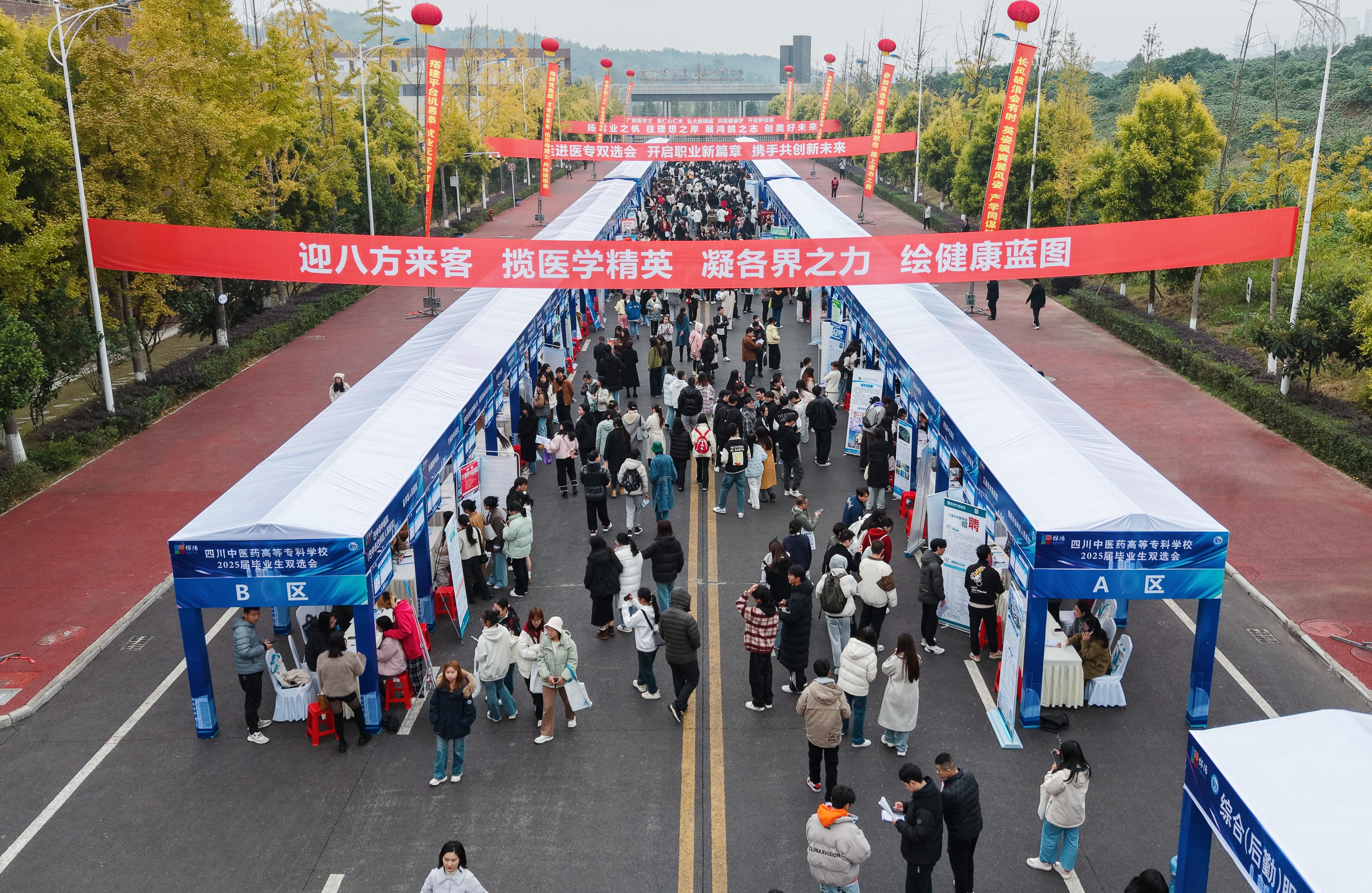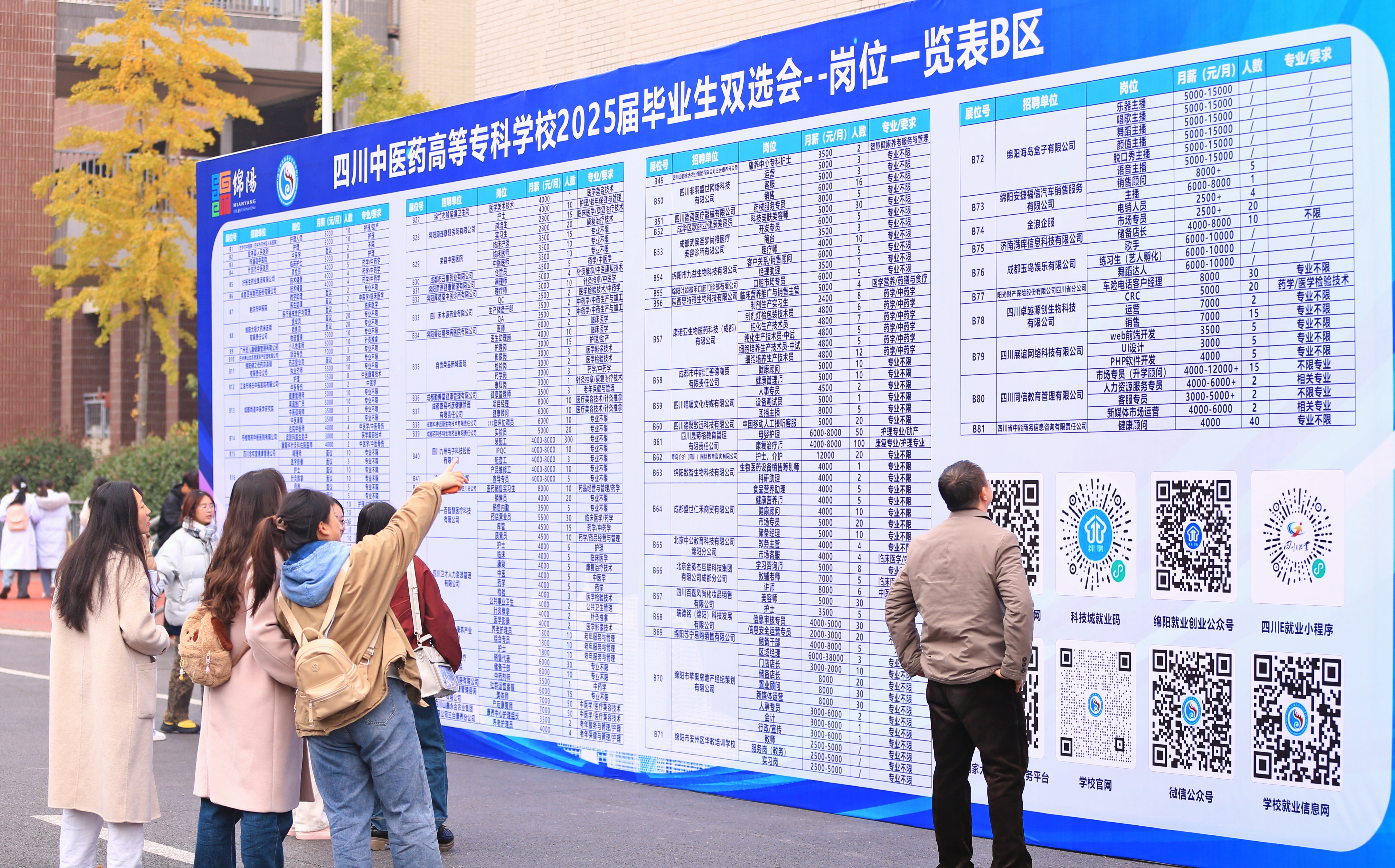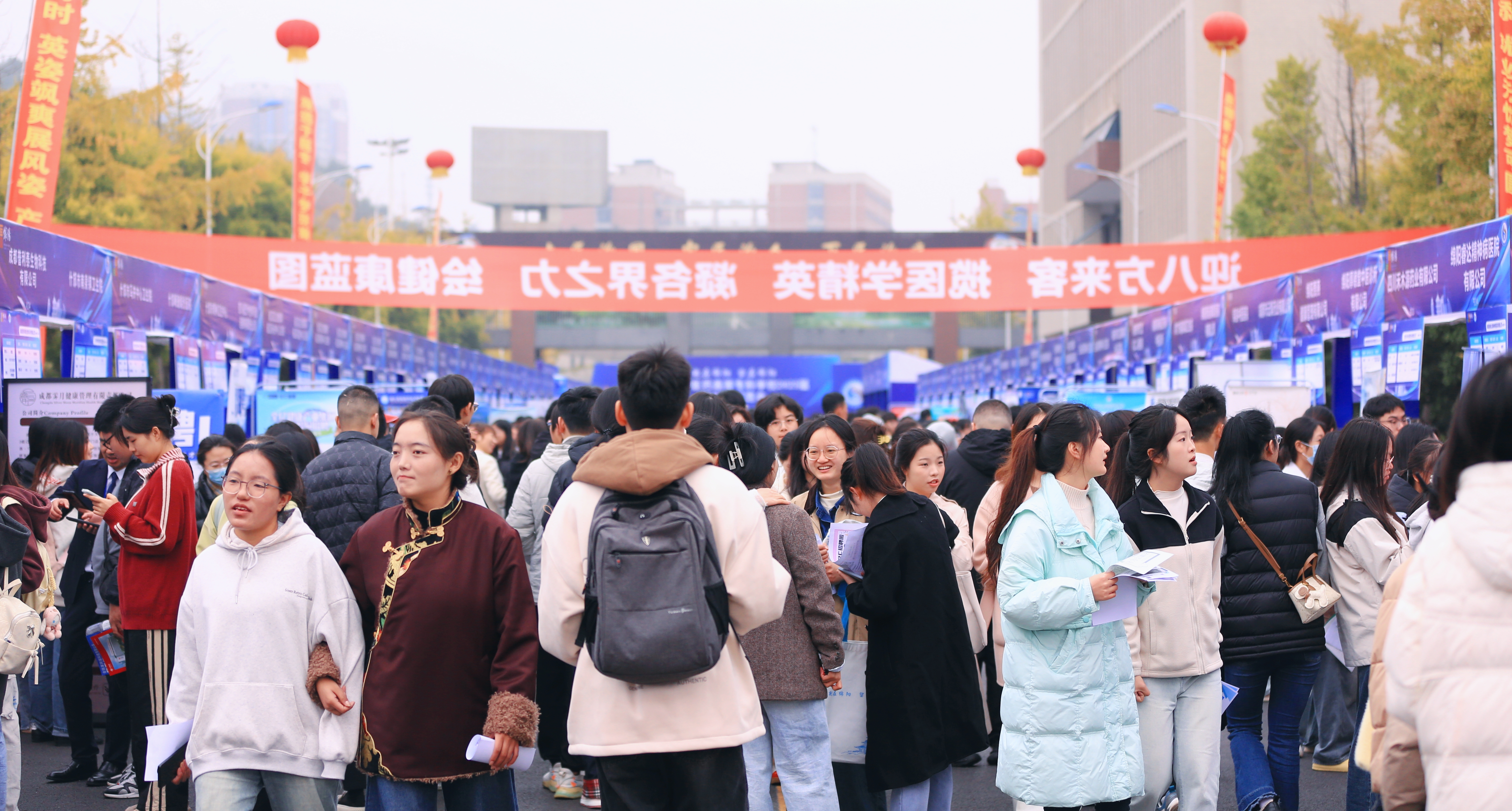 11月22日,四川中医药高等专科学校2025届毕业生双选会在南园银杏大道举行,本次双选会由绵阳市人力资源和社会保障局与我校联合举办,吸引了来自省内外医疗机构、医药企业、康养企业等172家优质用人单位参会,提供就业岗位3000余个,2500余名学生积极参与应聘或咨询,现场初步达成就业意向991人次。