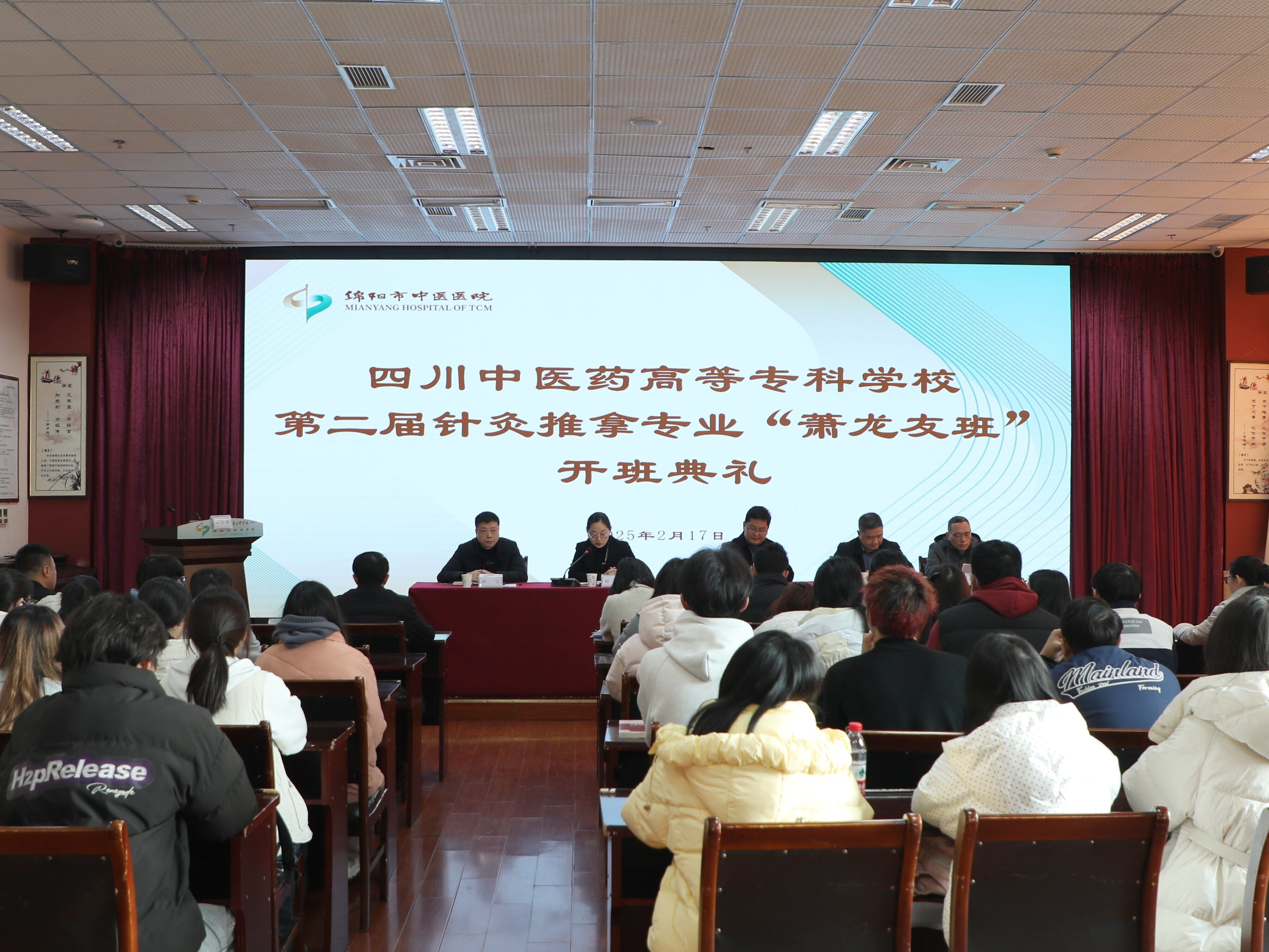 2月17日,我校第二届针灸推拿专业“萧龙友班”开班典礼在直属附属医院/绵阳市中医医院举行。副校长梁晓峰、直属附属医院/绵阳市中医医院副院长李安洪、校院相关部门负责人、教师代表及“萧龙友班”33名学生参加开班典礼。
