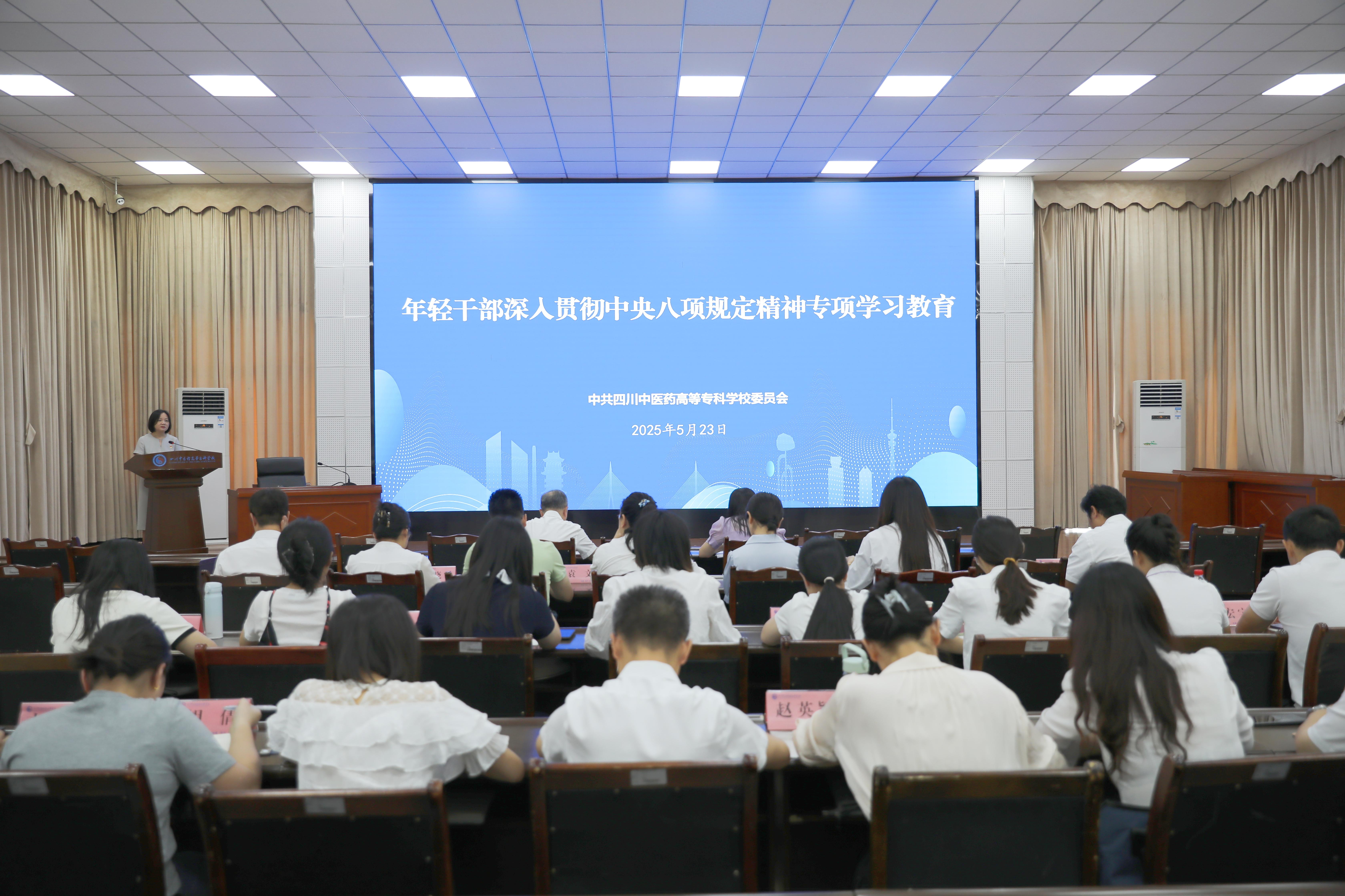 为深入推动中央八项规定精神走深走实,5月23日,我校举办年轻干部深入贯彻中央八项规定精神专项学习教育。党委书记李炜弘,党委副书记商碧辉,党委委员、纪委书记李文虎,党委委员、副校长、组织部部长尚宁川及全校年轻管理干部参加此次学习教育。