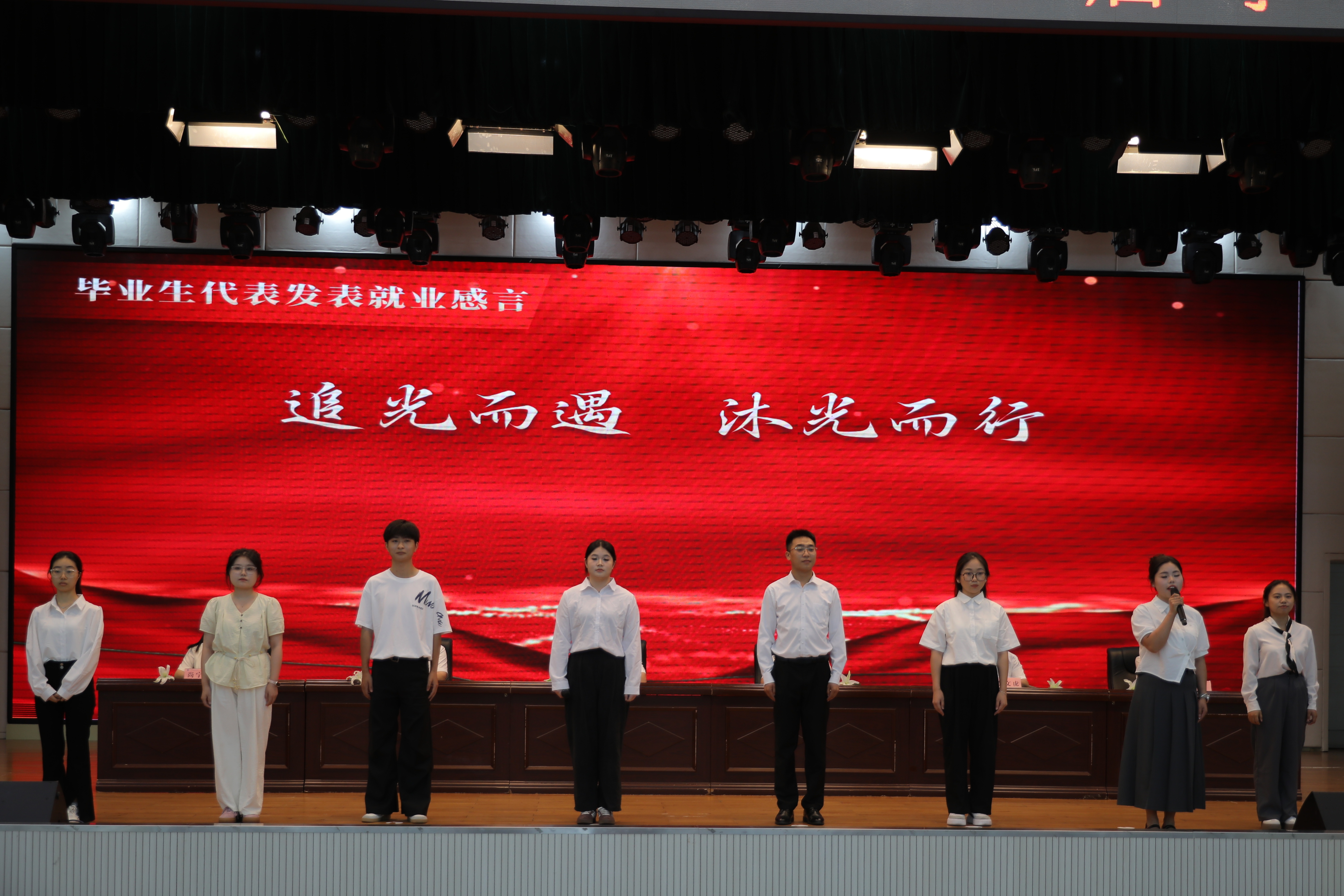 典礼上还举行了2025届校友信使聘任仪式,他们将带着母校的嘱托,在未来的征程上积极传递母校声音,讲述校友故事,搭建起母校和校友之间的桥梁。来自各学院的毕业生代表结合就业岗位发表了就业感言,分享了就业感受及职业理想。