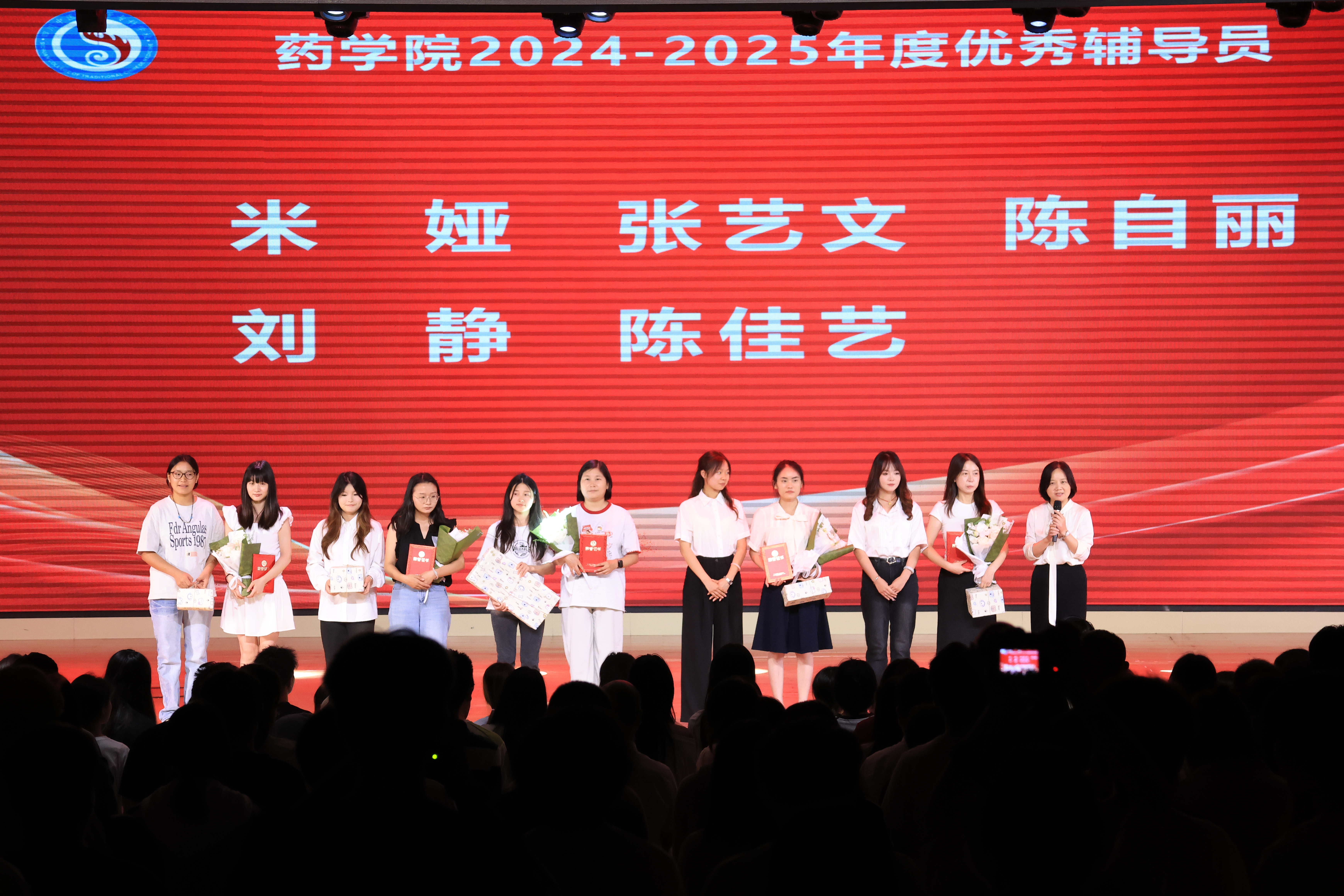 致敬辅导员环节,李炜弘为张艺文、米娅、陈佳艺、陈自丽、刘静等五位优秀辅导员老师颁发荣誉证书,同学们送上精心准备的卡片、鲜花和礼品。李炜弘高度肯定了药学院辅导员在学生成长中的重要作用,用“爱、力、美”勉励他们以谦卑之心精进技术,以热忱之志服务社会,秉承川医专“团结奋斗、追求卓越”的精神,以爱为灯,责任护航,勇担时代使命。