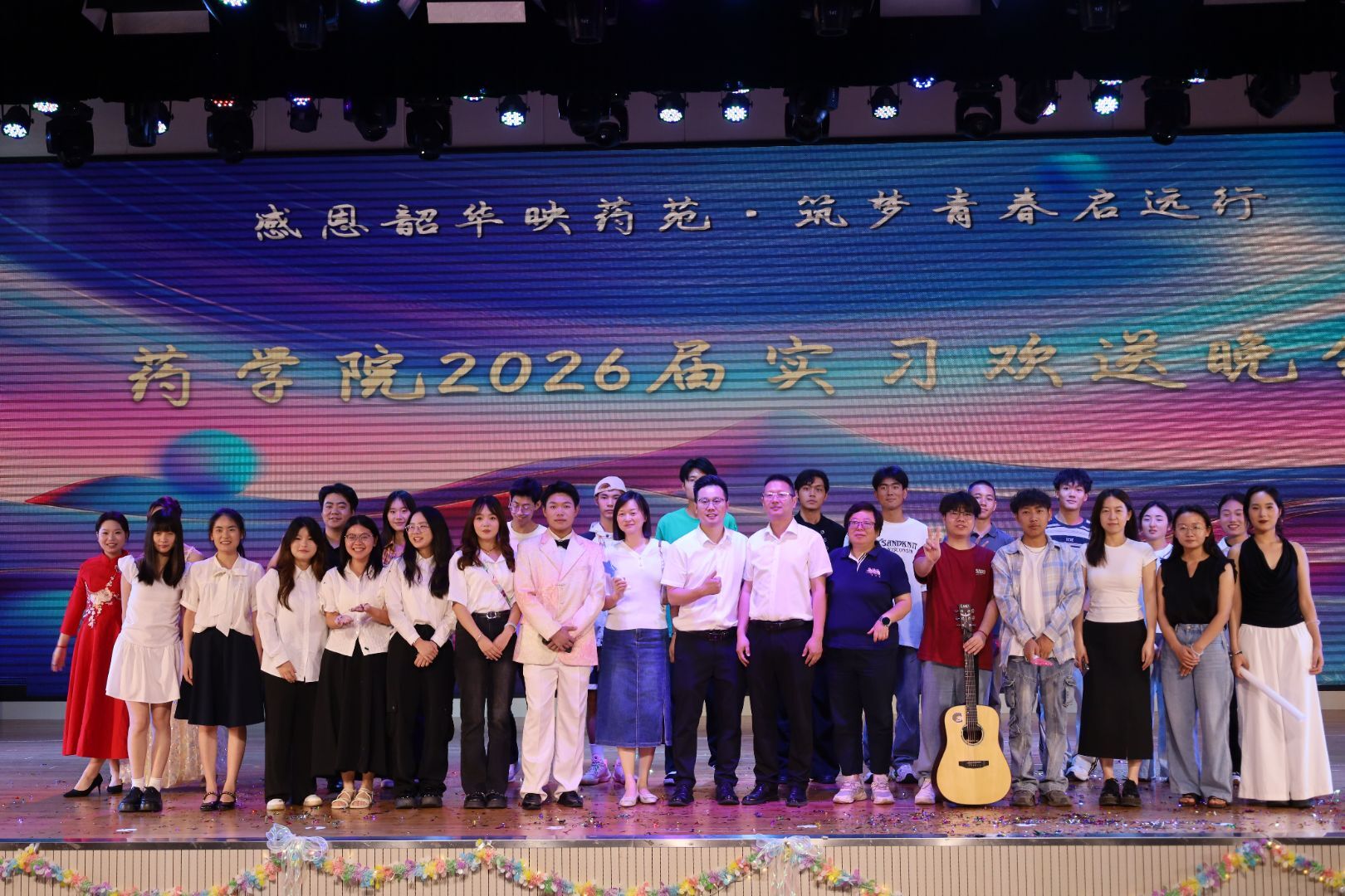 6月23日晚,药学院在北园礼堂隆重举行“感恩韶华映药苑 筑梦青春启远行”2024-2025学年表彰大会暨实习欢送会。校党委书记李炜弘,校党委副书记、校长李祥,校党委委员、副校长梁晓峰,各职能部门、二级学院领导以及药学院700余名师生代表共同出席活动。