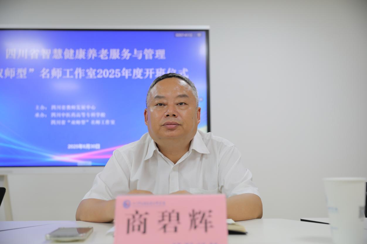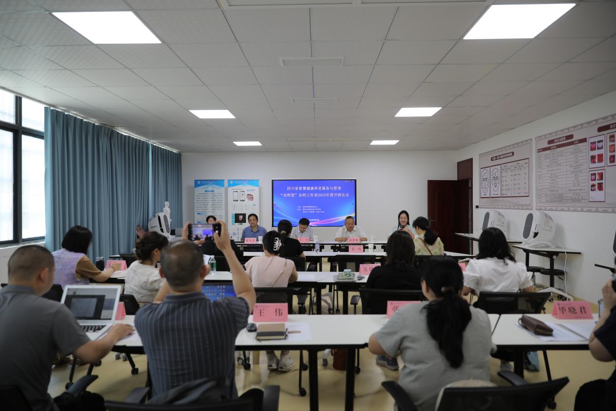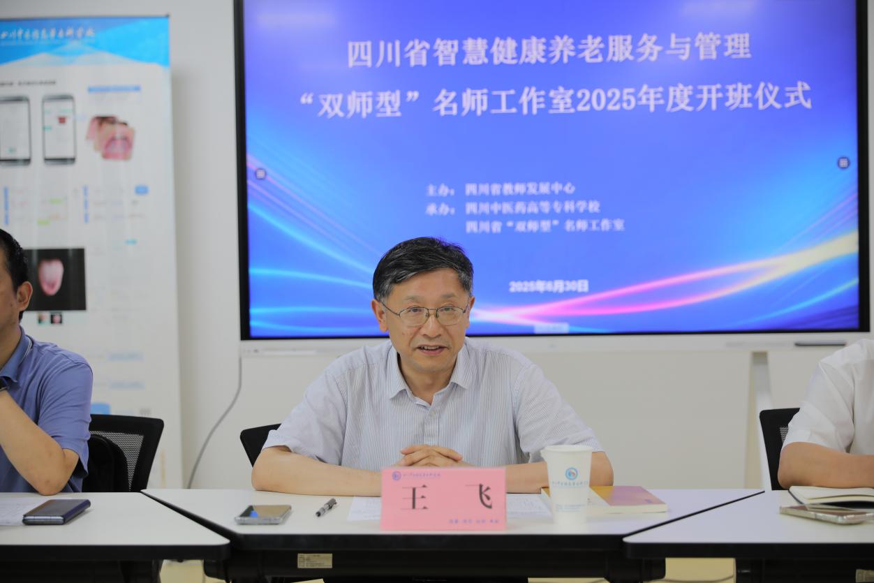 6月30日,四川省“双师型”智慧健康养老服务与管理研修班2025年度开班仪式在我校隆重举行。我校特聘教授、工作室主持人王飞,校党委副书记商碧辉,成都工业职业技术学院信息工程学院龙天才教授,四川广播电视台《咱爸咱妈》节目主持人徐佳利出席仪式。来自全省各院校的工作室学员齐聚一堂,共同开启为期5天的专题研修。