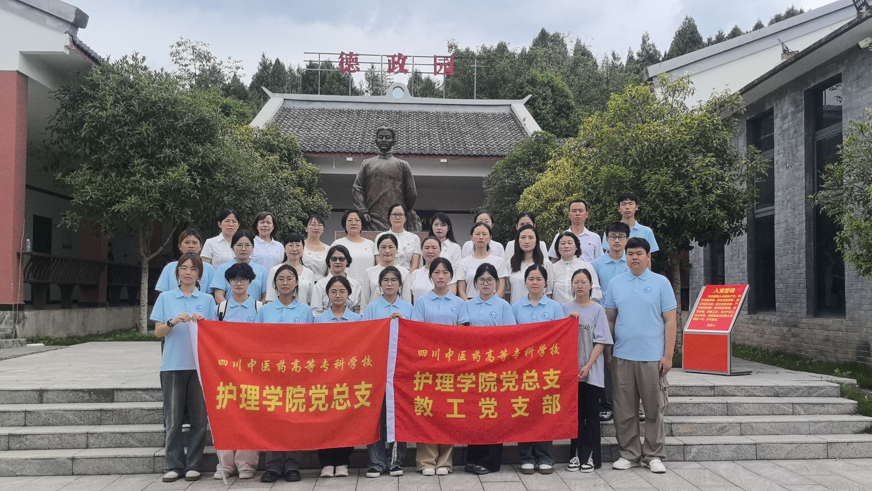 7月3日,护理学院党总支组织30余名党员及团学会骨干代表,赴绵阳市丰谷镇德政园开展“学纪明廉 传承红色基因”主题党团共建活动。活动以“党课+实地研学+誓言传承”模式,是将党纪学习与革命传统教育深度融合,是一次深刻的党性教育与作风洗礼,旨在强化纪律教育,筑牢党员干部廉洁自律思想防线,让参与者沉浸式感悟革命精神内核。