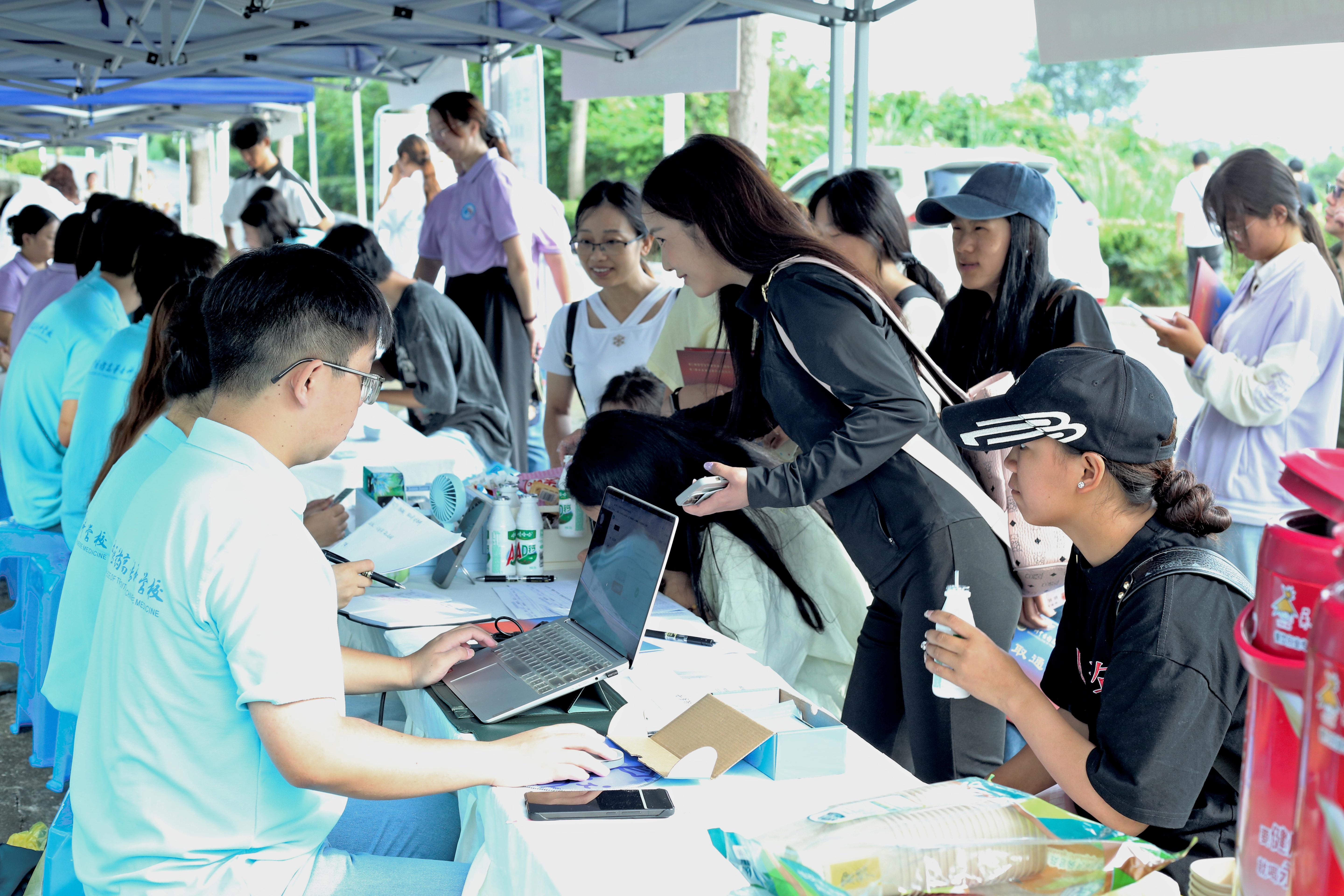 为确保迎新工作高效、顺畅,学校党委高度重视、精心部署,各部门、各学院统筹推进,全力营造便捷、温馨、安全的入学环境,为新生入学保驾护航。学校相关部门在火车站设立了新生接待点,安排专车接送新生及家长,校内开通报到点到宿舍楼的摆渡车,实现“从站点到宿舍”的无缝对接。校园内,工作人员和学生志愿者身着统一服装,主动帮助搬运行李、指引道路,耐心地为新生办理资格审查、绿色通道、注册报到等各项手续,耐心解答家长和新生的各种疑问,他们忙碌的身影和温暖的笑容成了校园里最靓丽的风景线。迎新现场秩序井然,各部门协同联动、高效配合,工作人员快速办理、耐心答疑,安保和后勤人员热情服务、及时协助,报到点还为同学和家长提供免费饮品及药品,实现以“心”迎新、暖心便捷的工作目标。