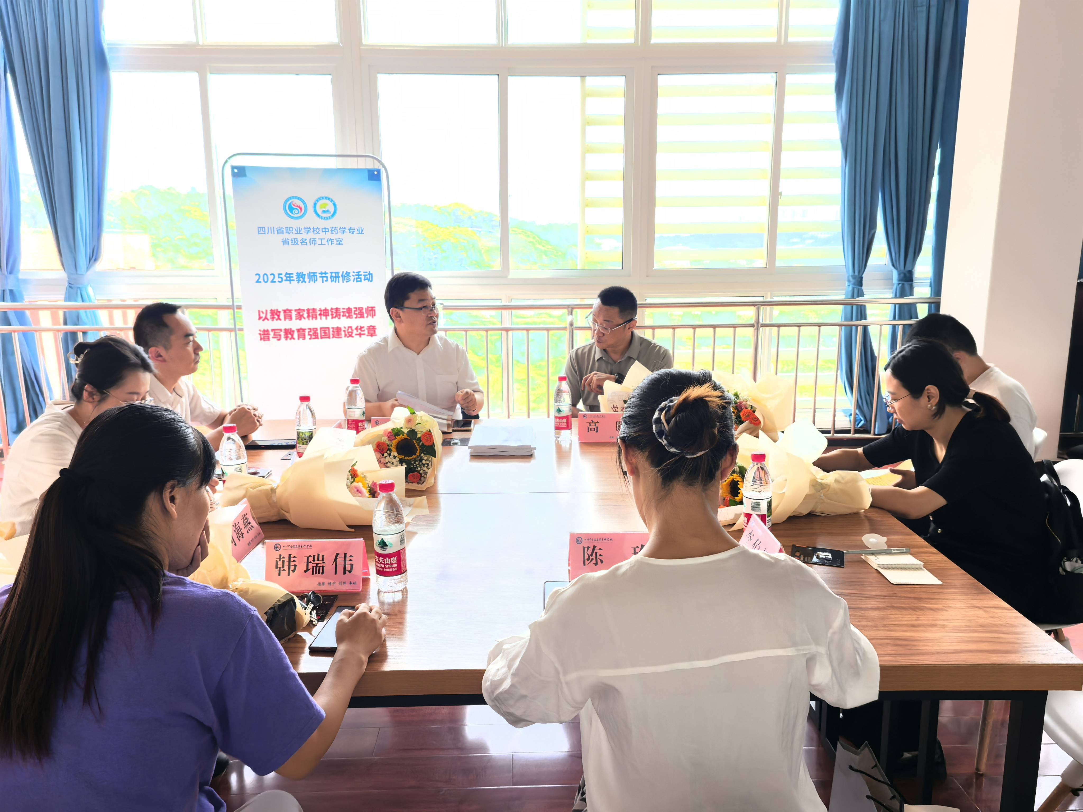 9月10日,四川省职业学校中药学专业名师工作室举办主题为“以教育家精神铸魂强师,谱写教育强国建设华章”的研修座谈会,工作室成员齐聚一堂,共话工作室发展与师资建设。
