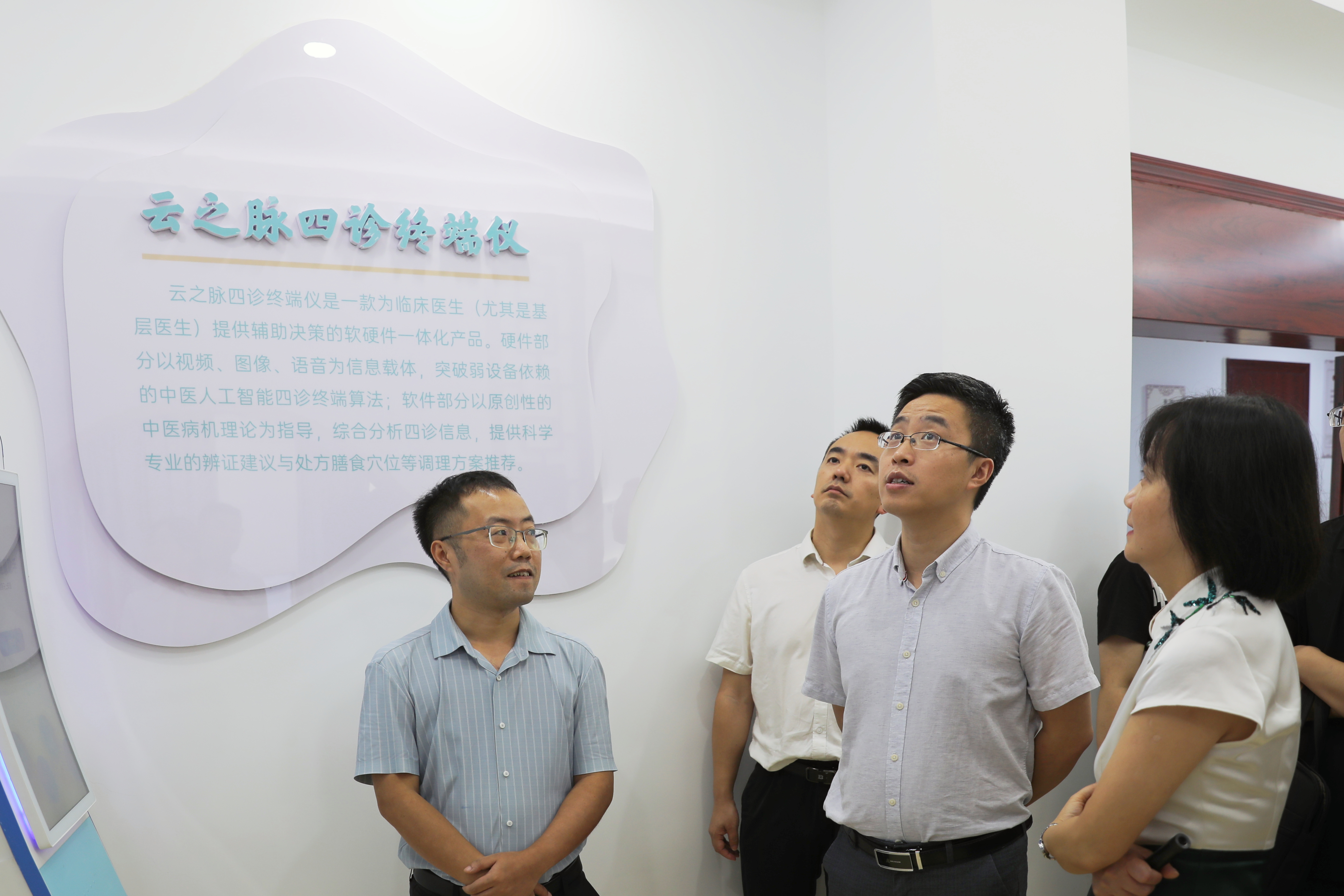 王敏一行先后到校史馆、绵阳中医文化馆、中药标本馆及中医四诊技能实训中心,详细了解学校发展历史、人才培养、学科建设、科研创新及社会服务情况,并体验了我校自主研发的“云之脉”系列中医健康管理产品与“敏鹊”AI医生助手系统。