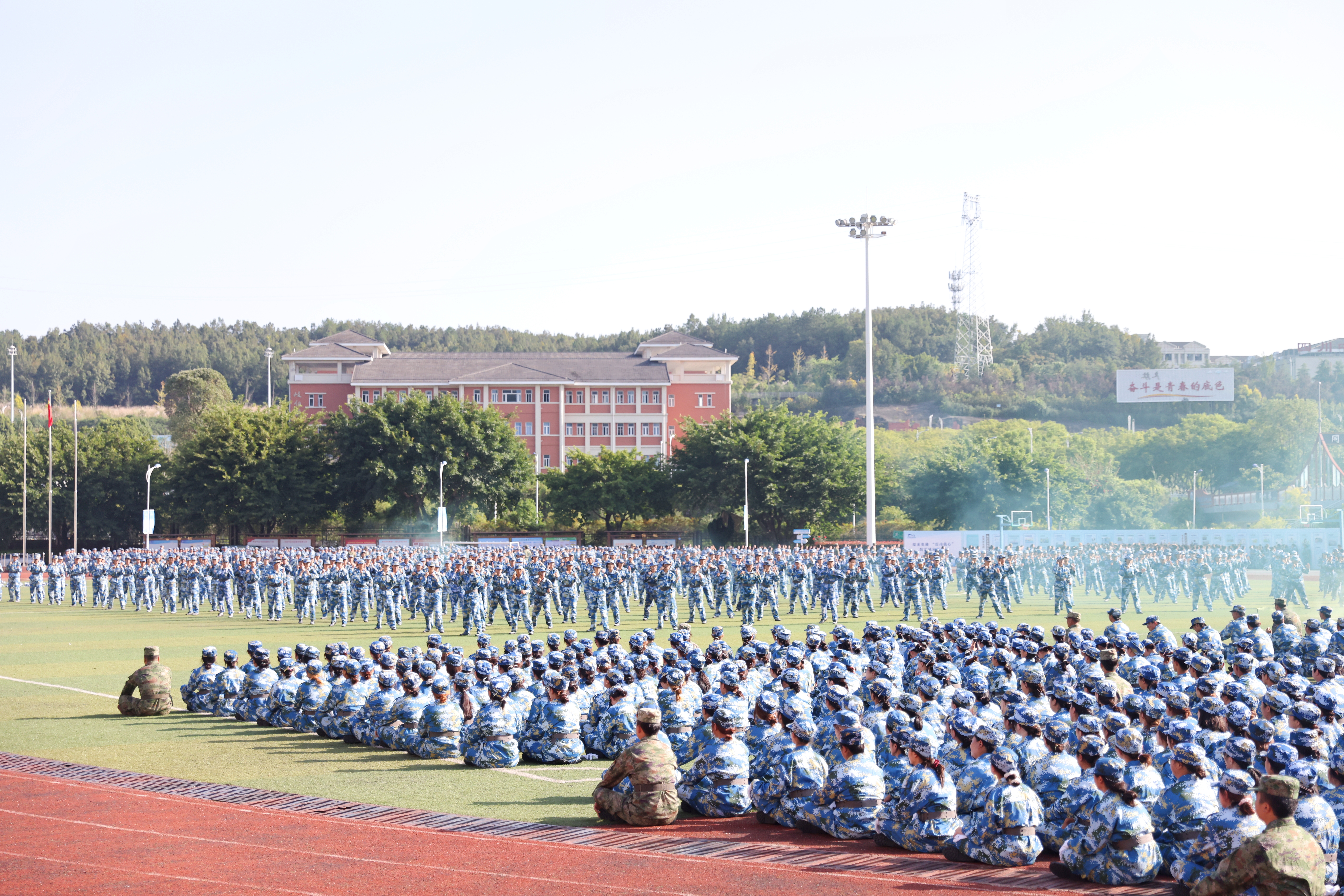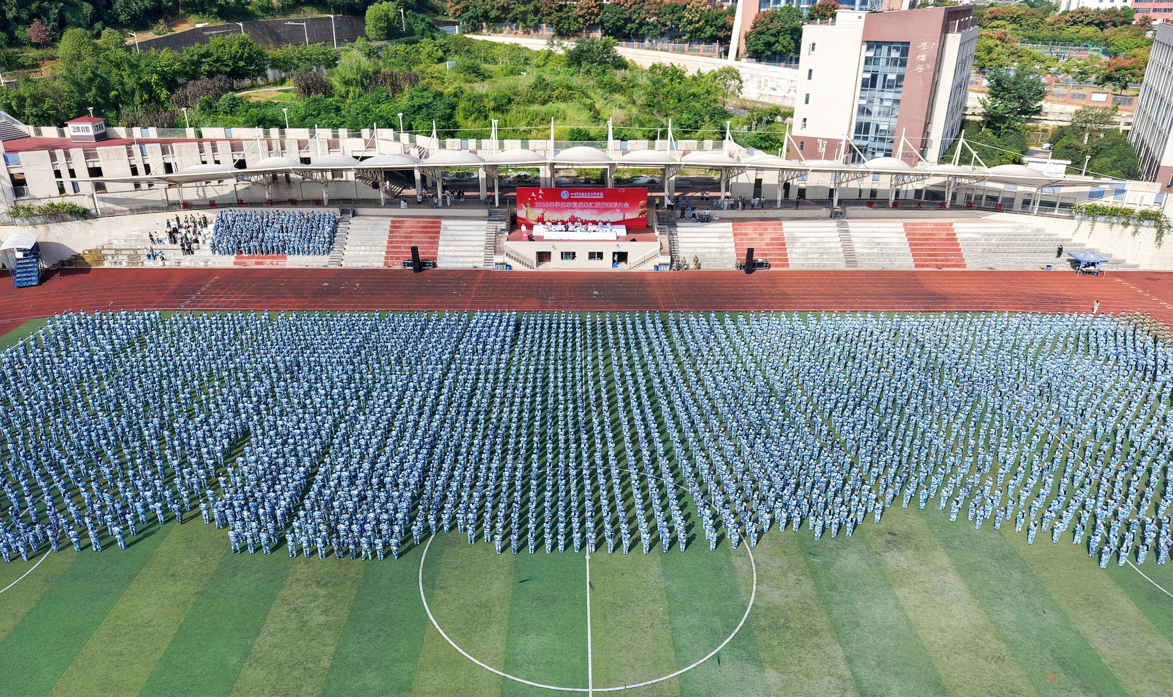 军训汇报表演在庄严的国歌声中拉开帷幕。分列式上,同学们步伐矫健、口号嘹亮,展现出昂扬向上的精神风貌。随后,格斗、匕首操、战术对抗、战地救护等方队依次登场,全面展示了军姿、拳术、战术配合等丰硕军训成果。会上还对军训中涌现出的优秀个人与集体进行了表彰;向涪城区人民武装部赠送锦旗。