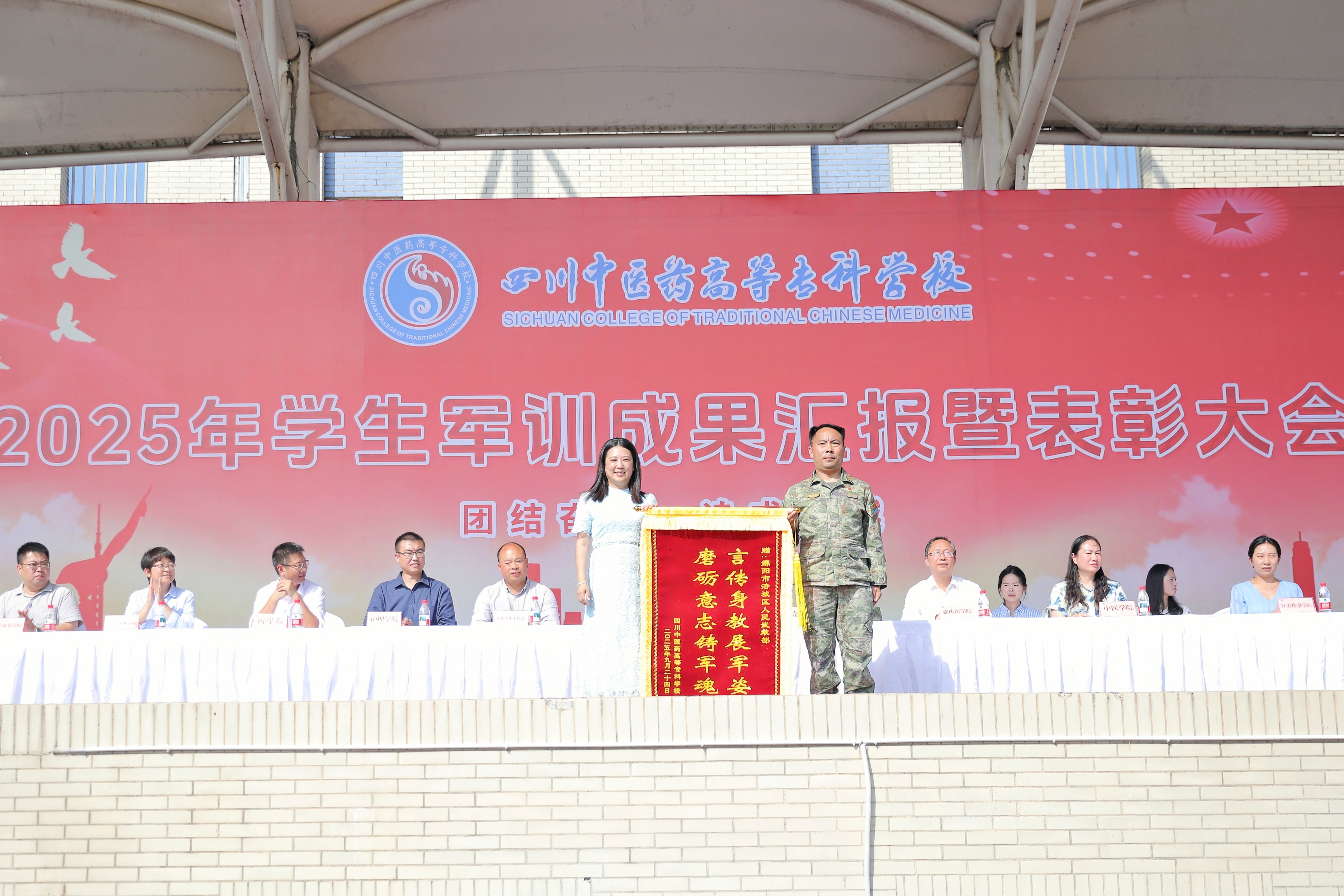 9月24日,我校举行2025年学生军训成果汇报暨表彰大会,涪城区人民武装部政委余江,副校长尚宁川,以及各职能部门、各学院负责人参加。