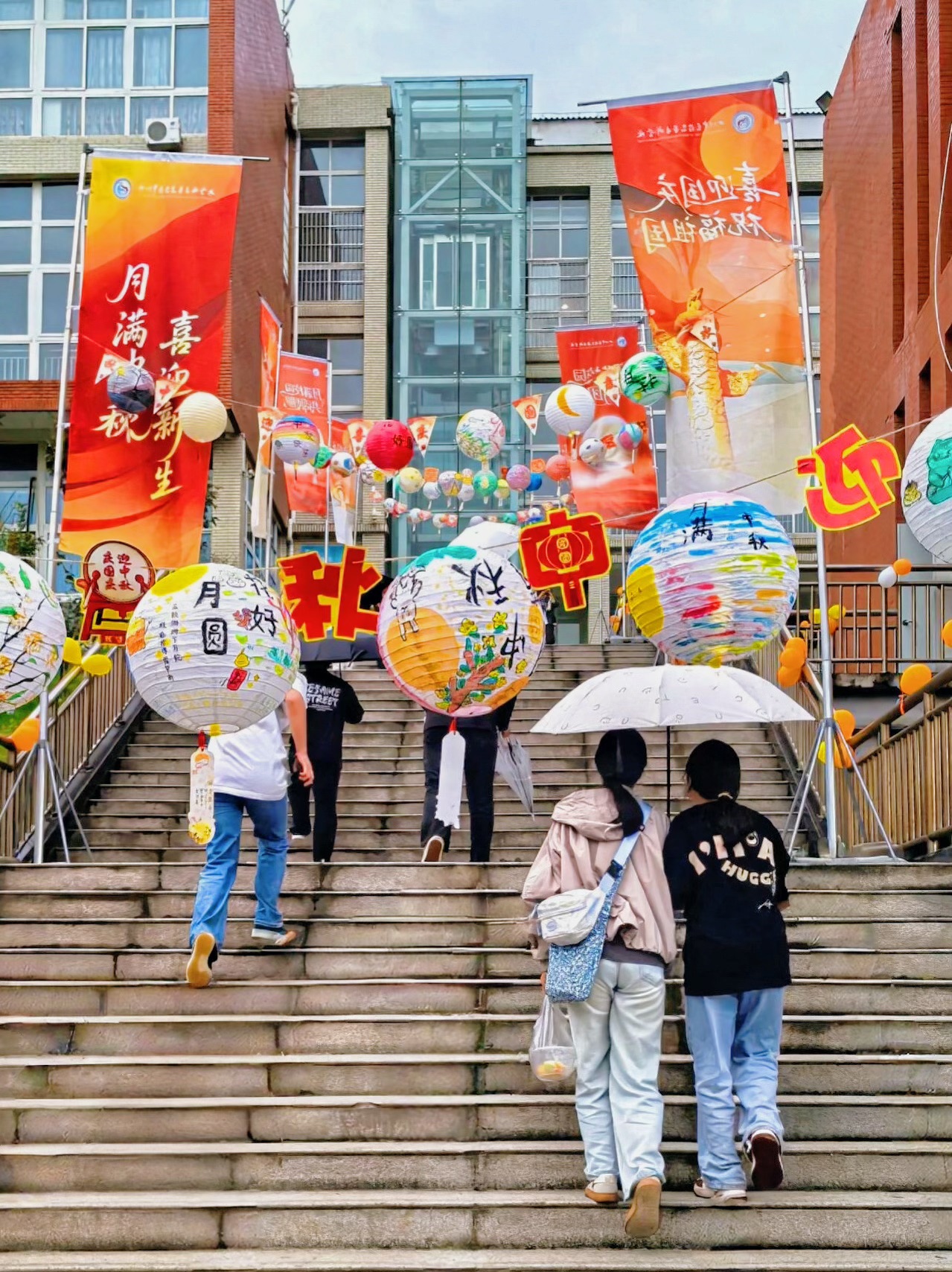 作为系列活动的亮点之一,“百灯妙绘耀中秋”展区吸引了众多师生驻足。两百盏由同学们亲手制作的创意花灯璀璨展出,灯面或绘有中秋玉兔、月桂等传统元素,或巧妙融入中医药文化符号。光影流转间,既传递着中秋团圆的美好祝愿,也彰显了学校独特的中医药文化底蕴,成为师生们拍照留念、定格美好瞬间的绝佳去处。