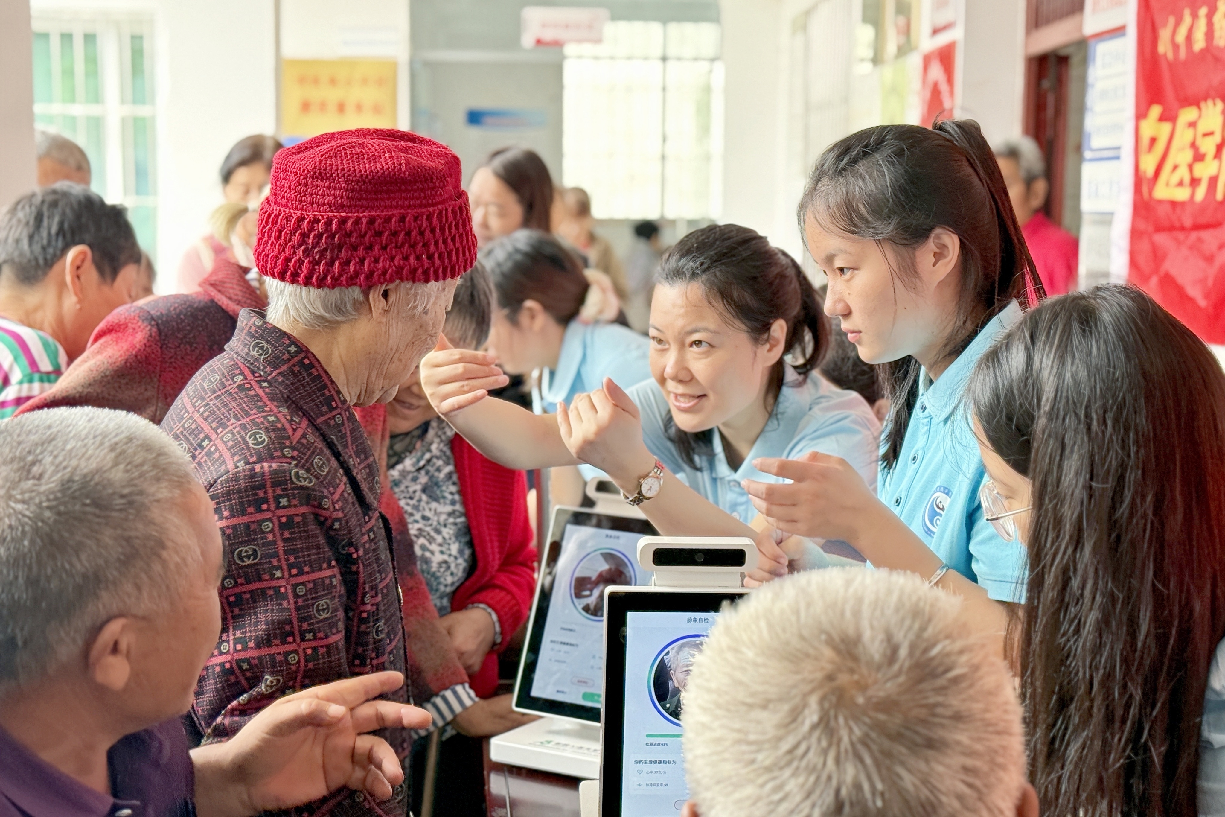与此同时,中医学院党总支、马克思主义学院党总支在演武镇小亭村便民服务中心联合开展乡村振兴健康服务活动。志愿者利用云之脉四诊终端仪为村民完成视频采集与舌诊检测,借助敏鹊AI医生助手开展智能医患问答,为村民提供舌脉智能诊断及处方智能推荐服务。志愿者还为村民开展血压测量、中医推拿体验等服务,同时结合秋冬季节特点,为村民普及养生知识,解答村民关于常见病预防、慢性病调理的疑问,以专业服务切实提升村民健康获得感。