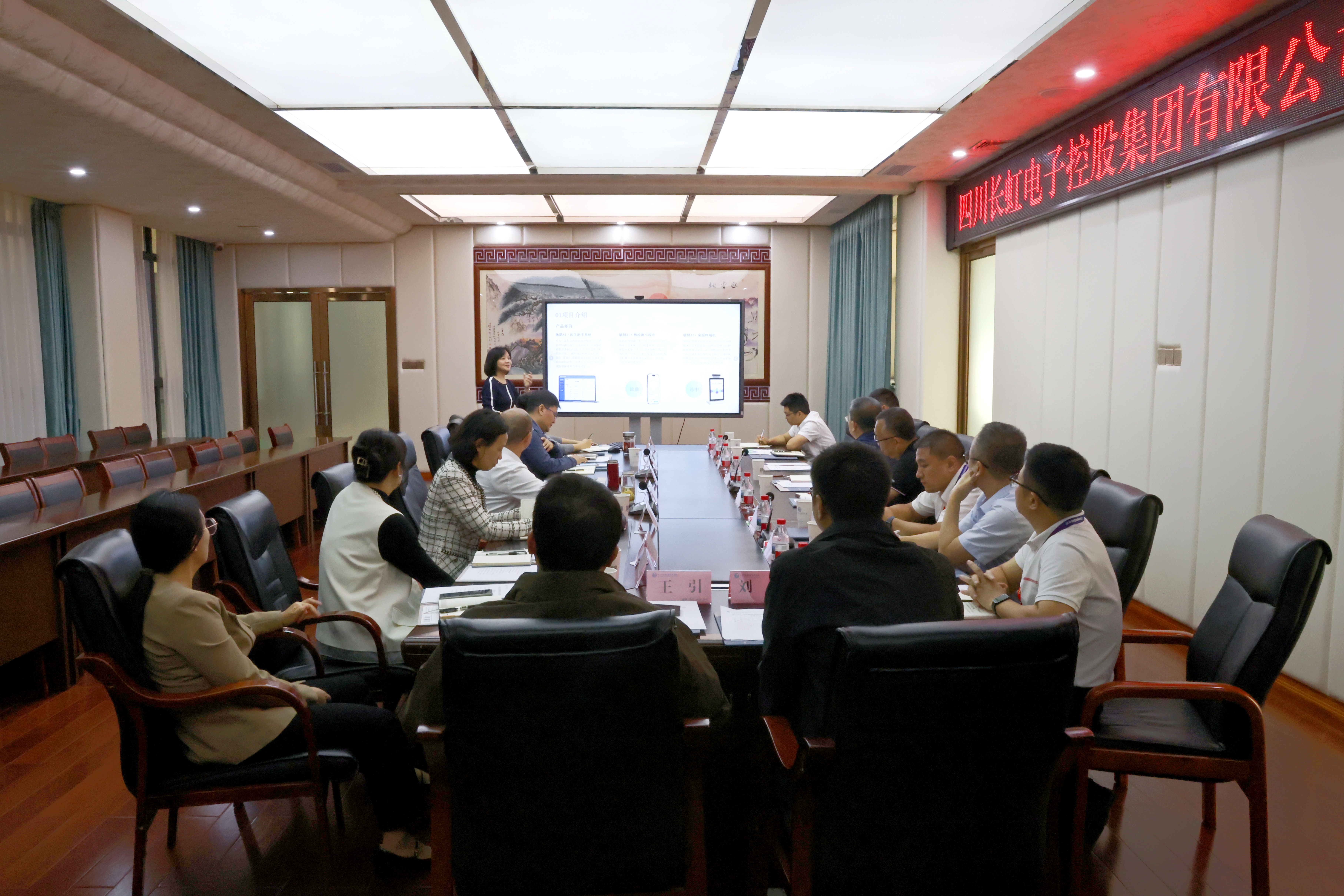 党委书记李炜弘对“敏鹊AI助手”“云之脉”项目的研发和试点应用情况进行详细介绍。她表示,校企双方有天然的区位优势、有共同服务大健康的愿景、有共同的技术设想,在此基础上,学校将积极推进与长虹建立战略合作关系,深度开展“AI+医疗”产教融合,在人才队伍、科研研发、成果转化等方面实现资源共建共享。