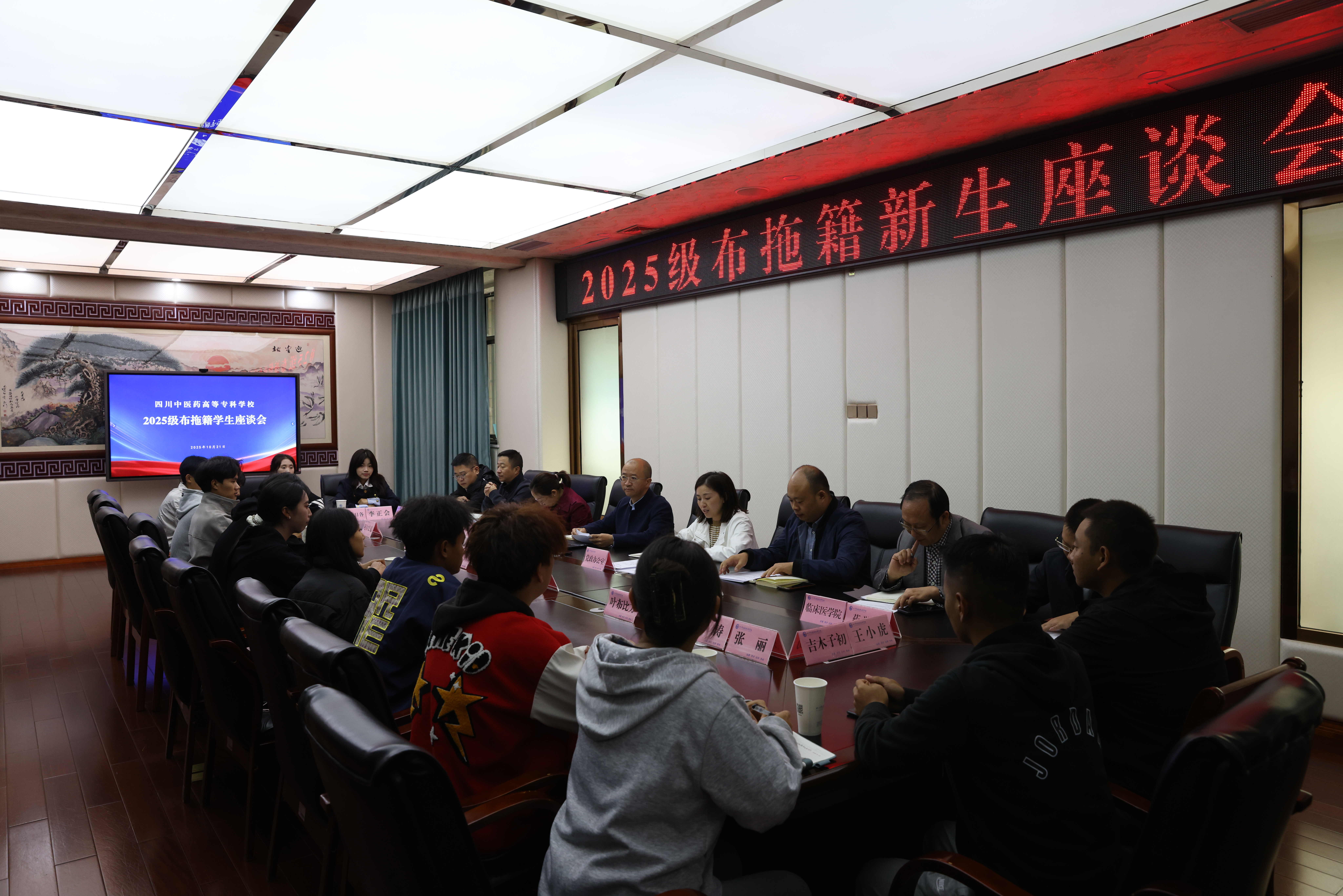 10月21日,我校在综合楼新会议室隆重举行2025级布拖籍新生座谈会。校党委副书记、校长李祥,党政办公室、党委学工部、教务处、后勤服务管理处及各学院相关负责人、辅导员共同出席本次会议,与来自布拖县的莘莘学子亲切交流,共话成长。