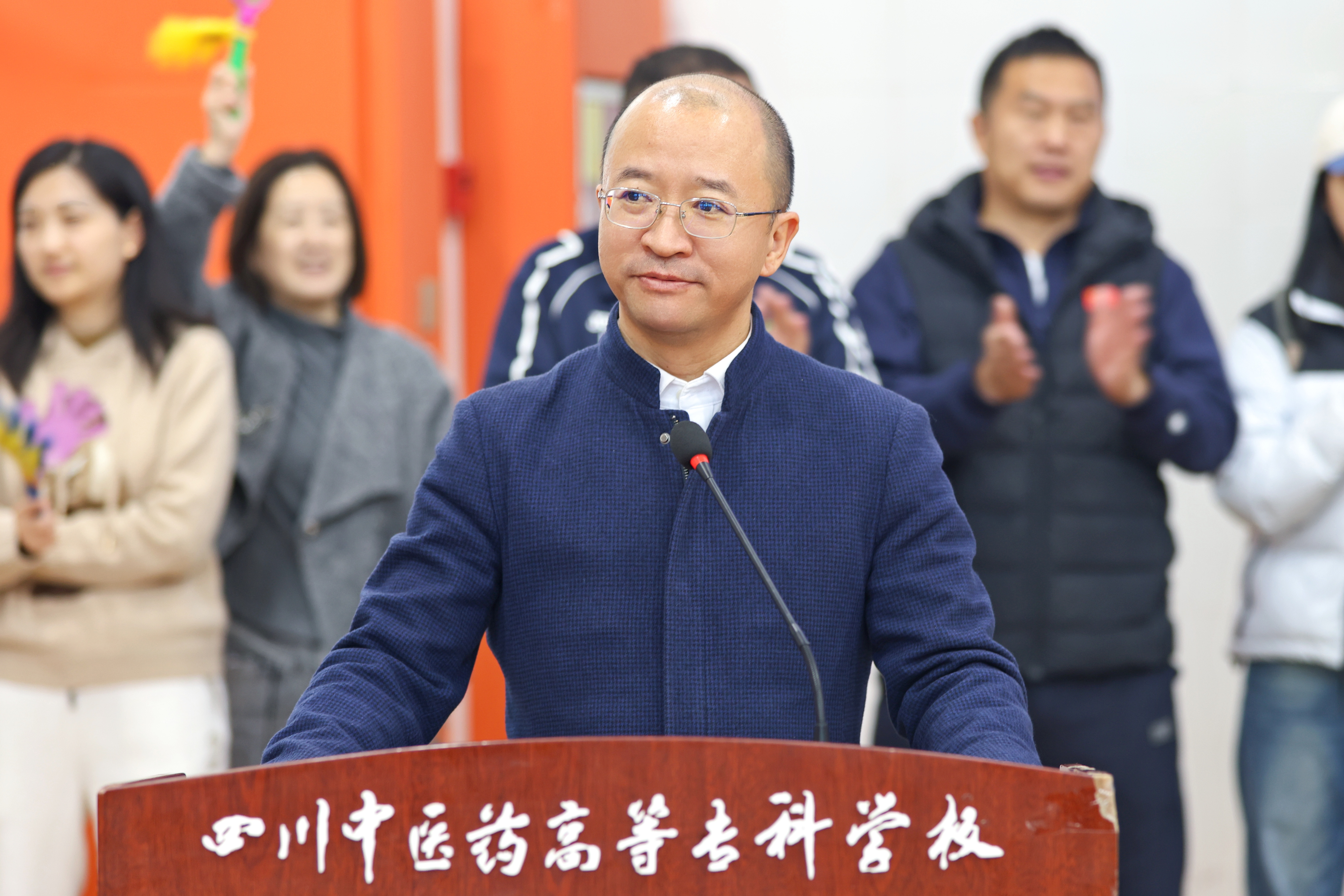 开幕式上,学校副校长、体育运动委员会主任梁晓峰致开幕辞。他首先对本届运动会的顺利召开表示热烈祝贺,向精心筹备运动会的全体工作人员、积极参与的运动员以及辛勤评判的裁判员表示衷心感谢。他指出,举办秋季球类运动会,是增强学生体质、磨练意志品质、培养团队协作精神、丰富校园文化生活的重要载体。本届运动会将篮球、啦啦操与乒乓球、羽毛球进行融合,这不仅是对我校体育事业多元发展的积极探索,更是对校训“德馨 博学 创新 奉献”的生动实践。它象征着川医专人在坚守中突破、在传承中创新的精神风貌。
