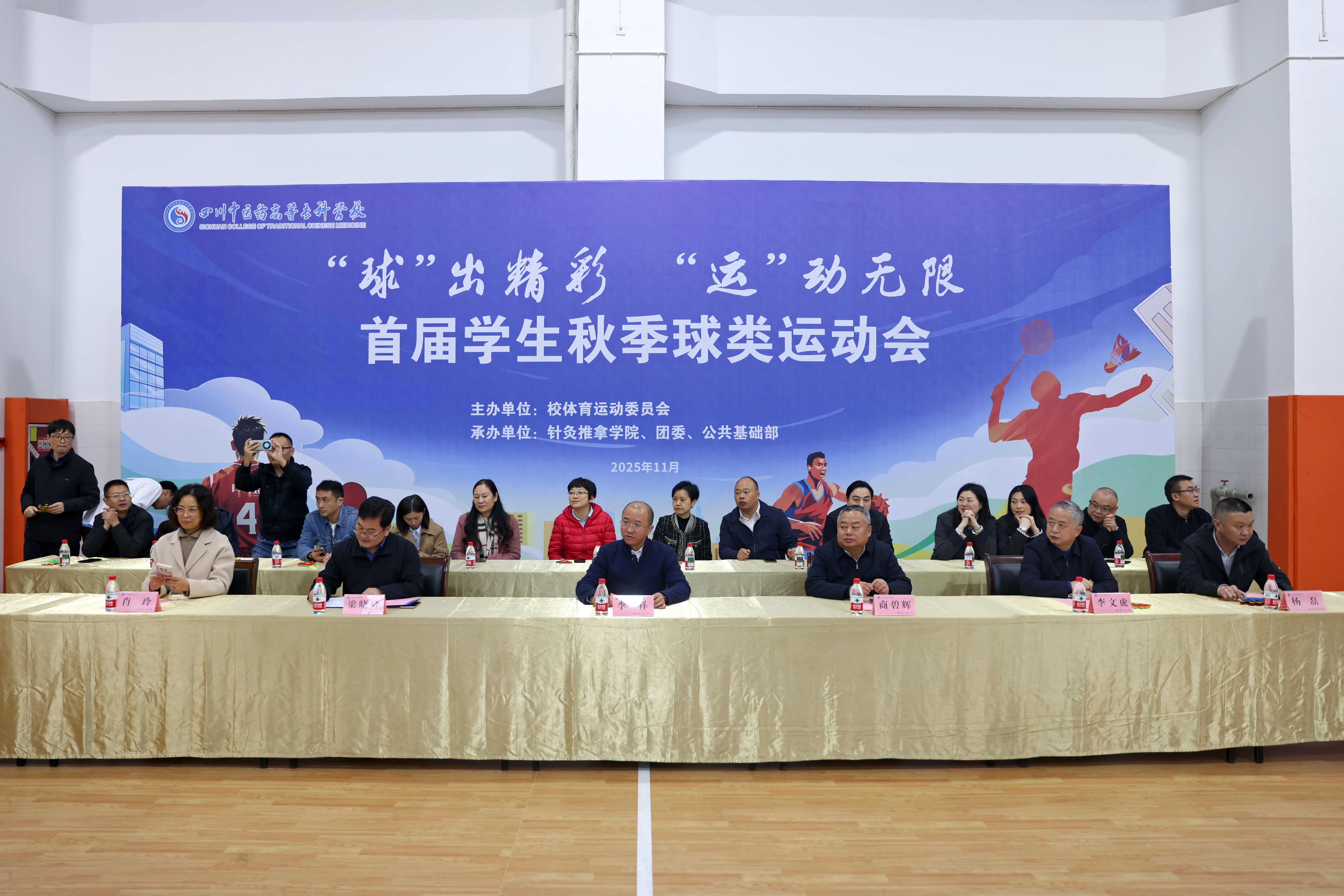 11月3日,我校首届学生秋季球类运动会开幕式在南园室内体育馆举行。本届运动会由学校体育运动委员会主办,针灸推拿学院、校团委与公共基础部联合承办。学校领导李祥、商碧辉、梁晓峰、李文虎、肖玲,各职能部门负责人与师生代表共同见证了这一体育赛事的开启,新西兰青年学者的惊喜亮相更为开幕式增添了浓厚的国际色彩与独特魅力。