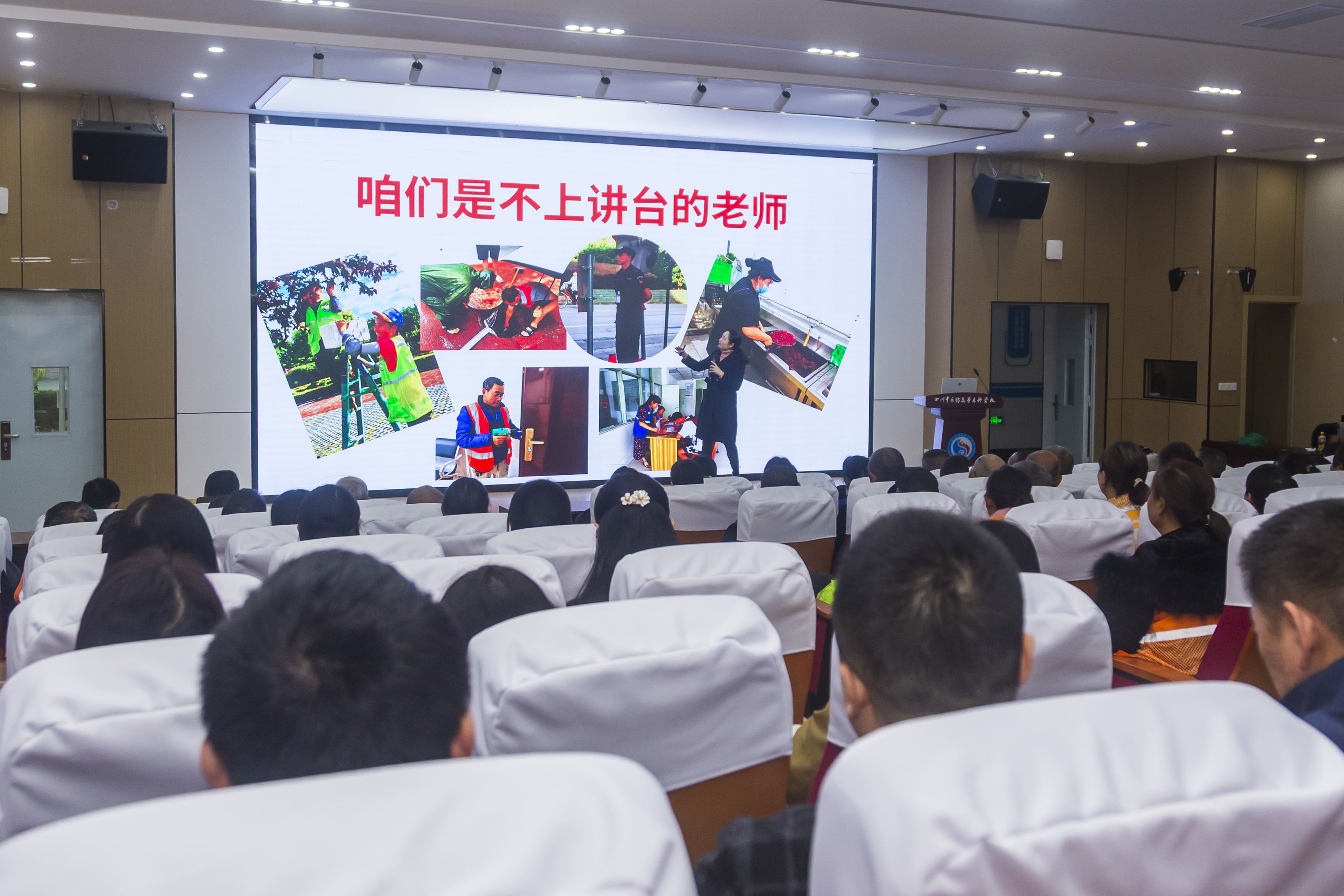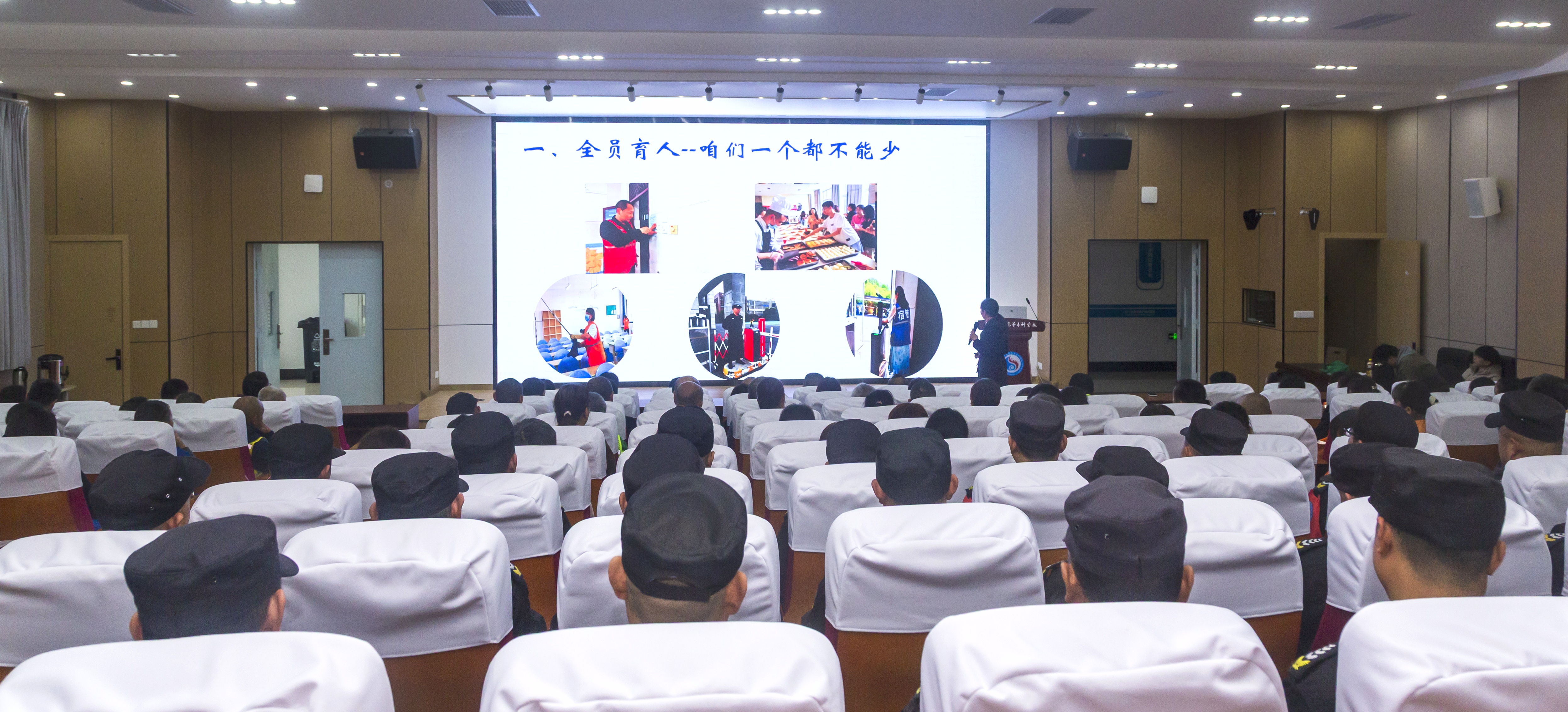 培训针对不同岗位提出具体育人指引,食堂职工需严把食品安全关,传递节约与尊重;宿管人员应平衡规则与温情,培养学生秩序意识;保洁绿化团队通过整洁环境渗透美育与劳动教育;维修师傅以专业高效展现职业精神;安保人员则以坚守与热心守护校园安全。