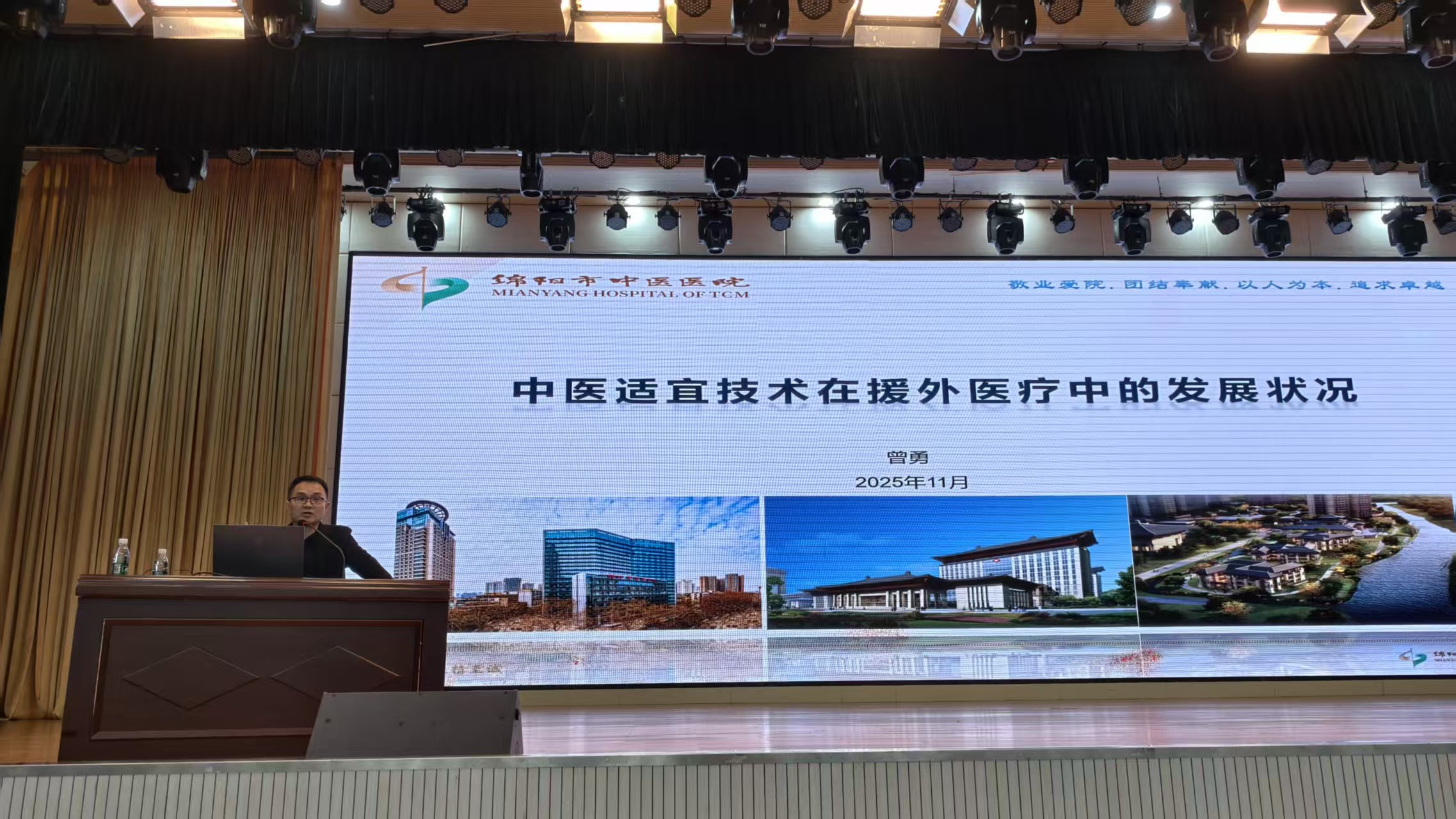 11月11日晚,针灸推拿学院在北园学术厅举办专题讲座,特邀中国第25批援非洲莫桑比克医疗队成员、绵阳市中医医院脑病中心副主任曾勇分享“中医适宜技术在援外医疗中的发展状况”。