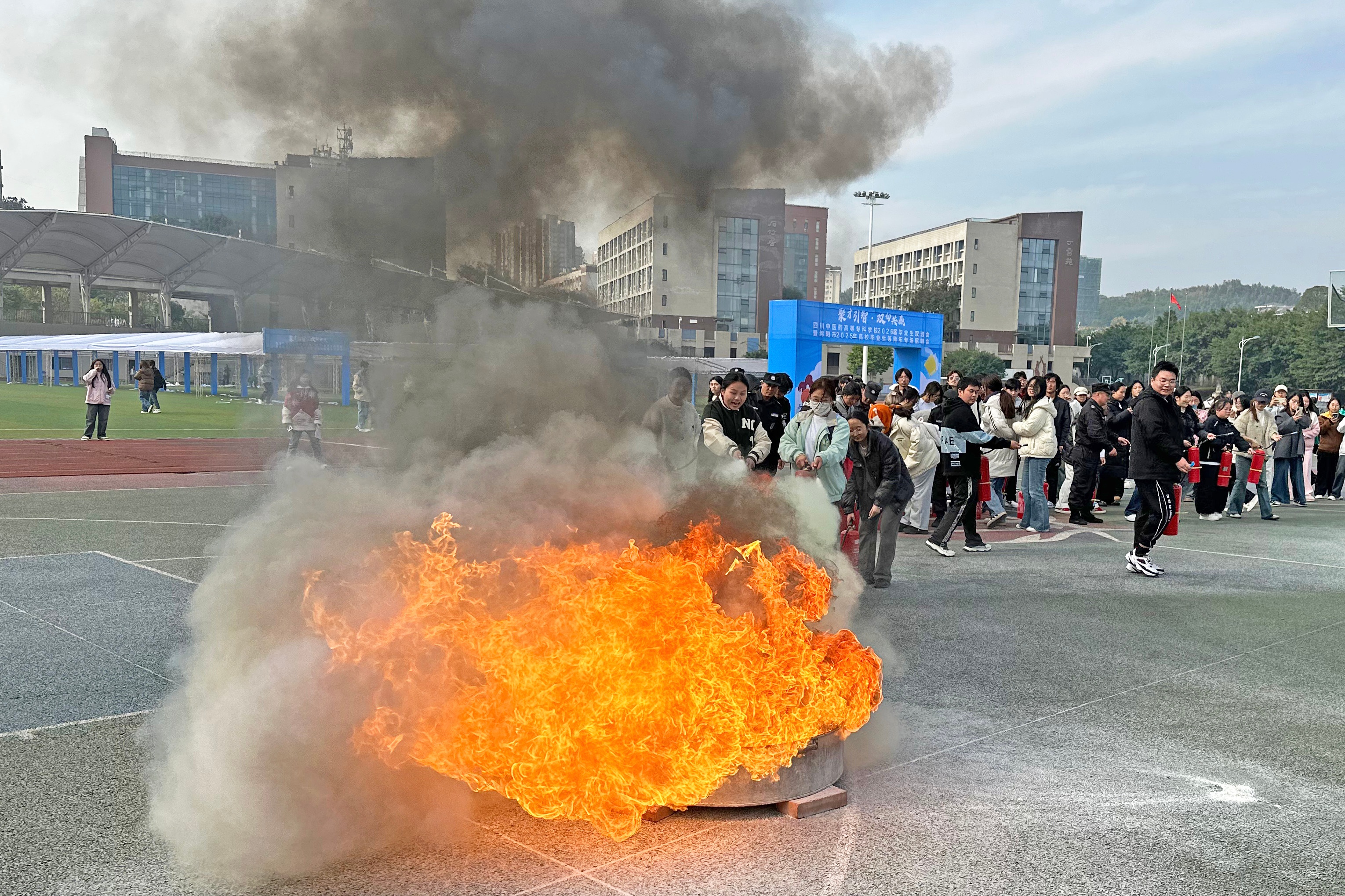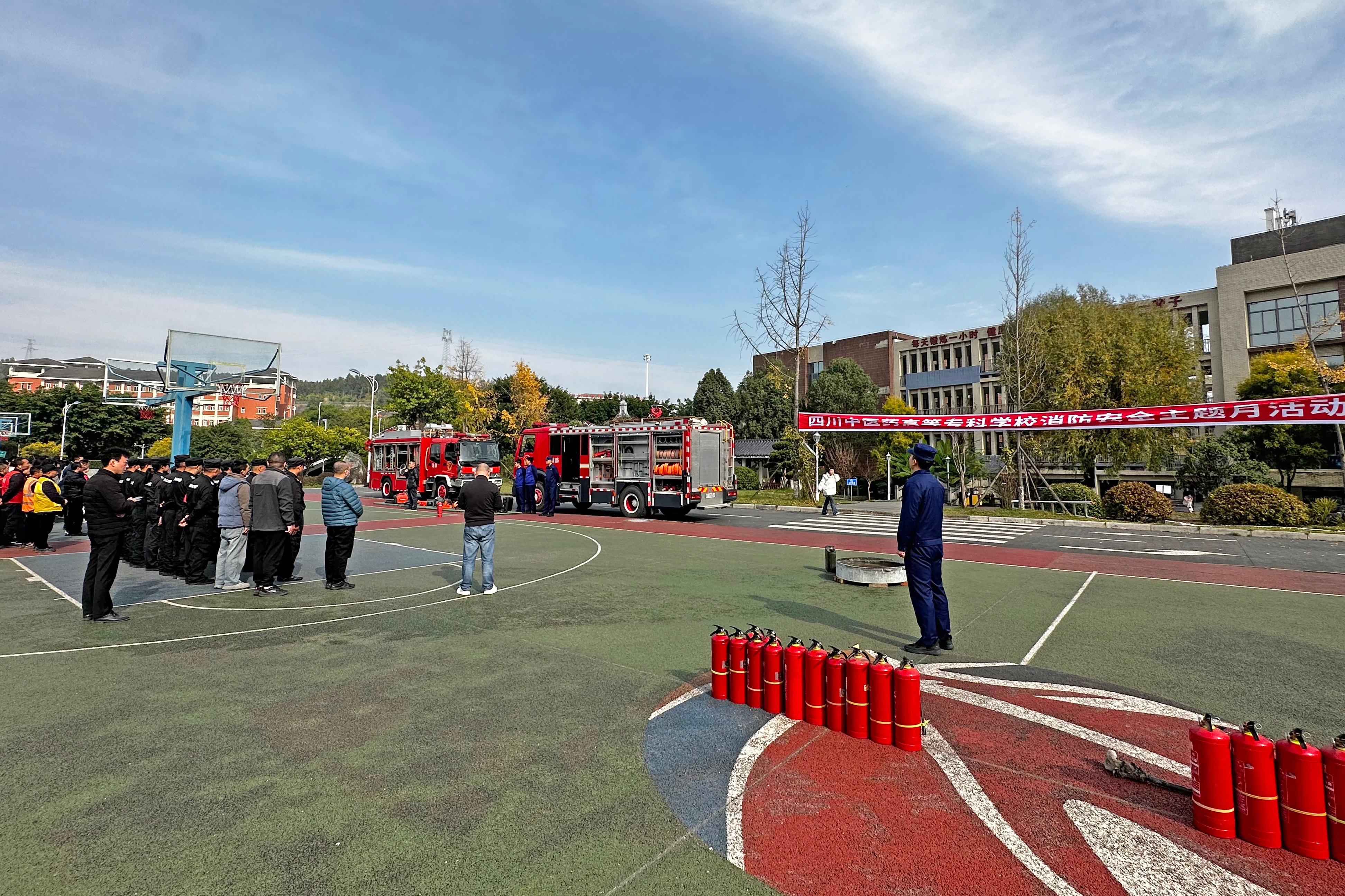 11月20日下午,由校党委保卫部牵头组织,特邀科技城新区消防救援大队到我校开展消防安全培训活动。各学院师生代表、后勤服务人员、安保队员等共计200余人参与活动。